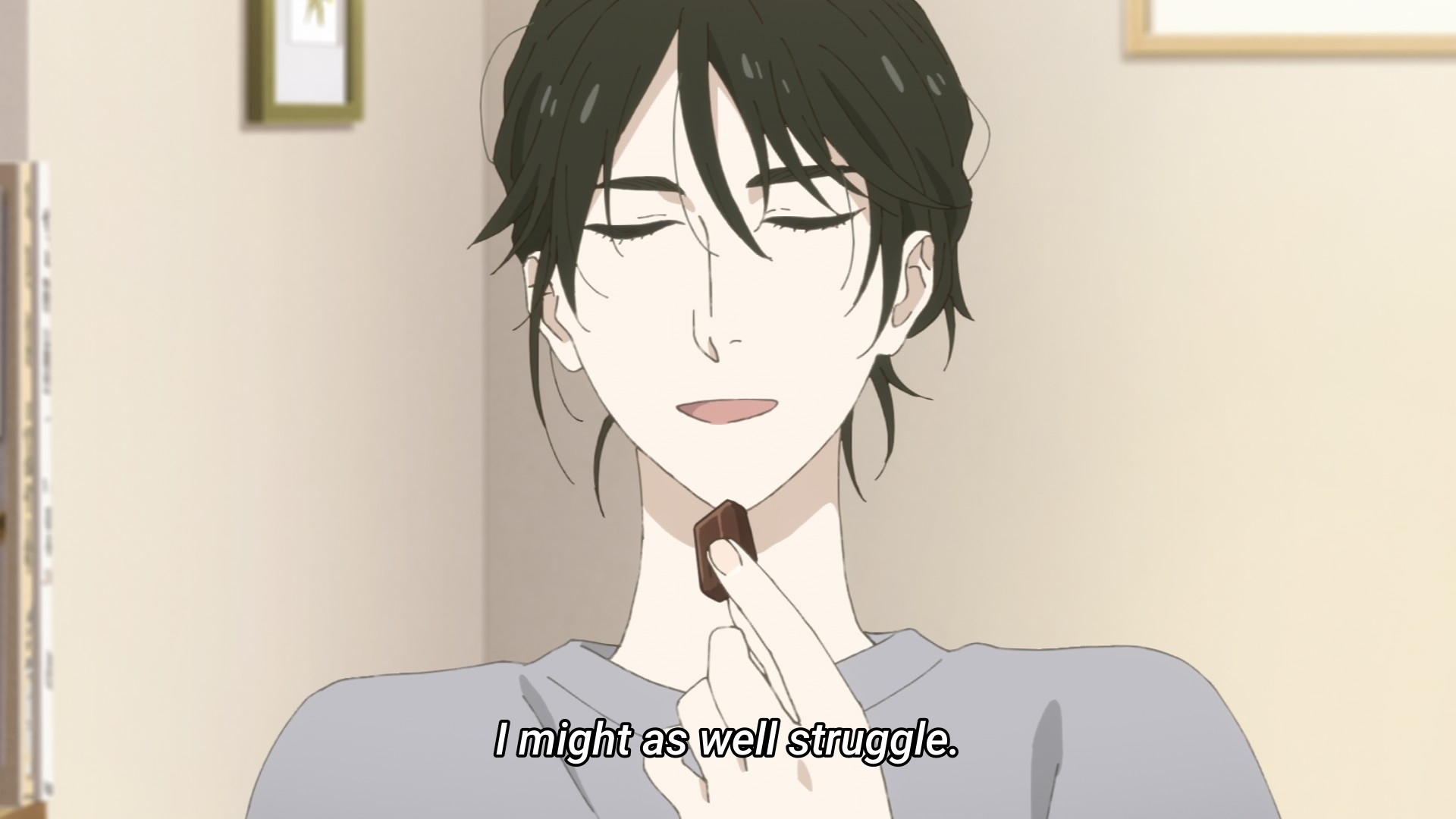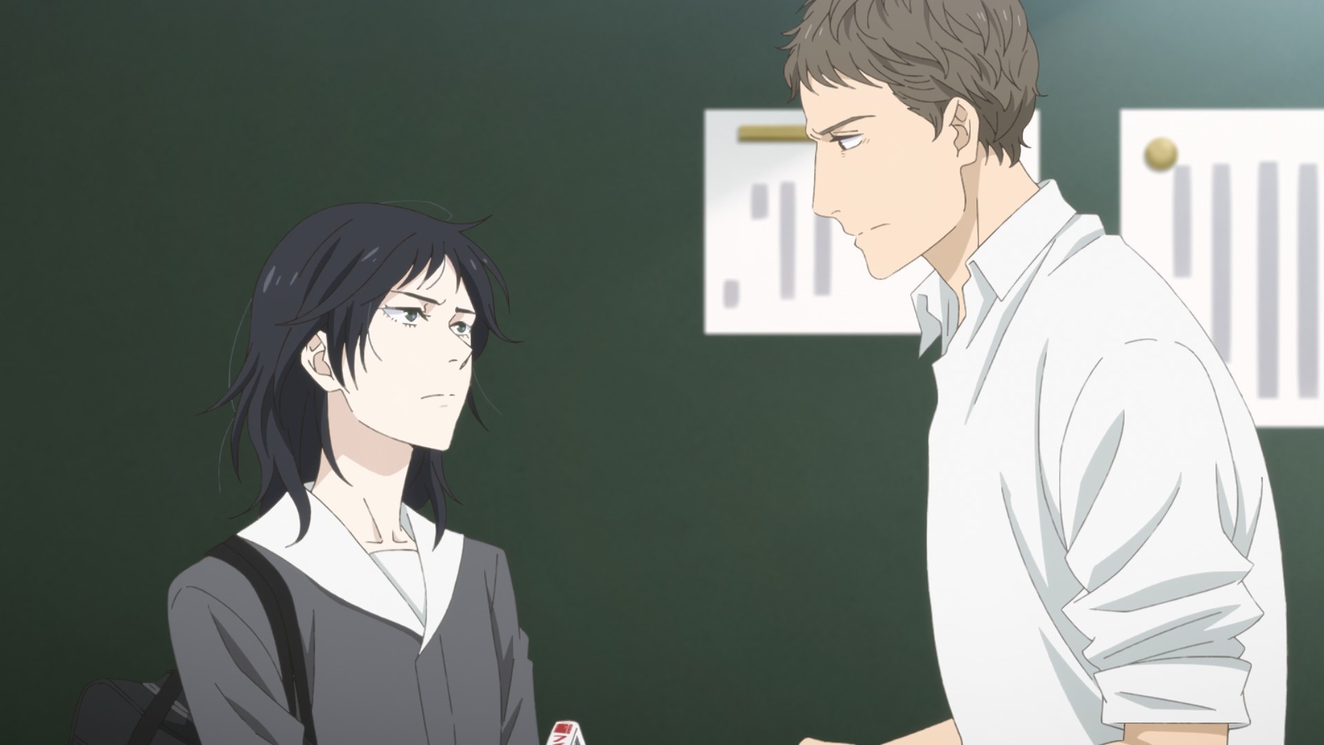 “I mean, does anyone actually spend their time for the sake of others?” asks the woman who literally took in her dead sister’s child. “No matter what you do for others, it’s very unlikely that you’ll change their heart or actions.” That’s patently wrong, but okay. As Asa listens to Makio go on yet another cynical tangent, she can’t help but think back to Togo’s conversation with Chiyo. Did his words help? Did he manage to move Chiyo’s heart? How ’bout her own talk with Chiyo? There might not be an answer, or rather, there might not be an answer for a long time. Maybe Togo and Asa’s words won’t have an effect on Chiyo’s heart today, but things might be different if you check back in a year. Or maybe even ten. You never know. It takes forever for a trickle of water to carve out a canyon, but it still happens. And this is maybe why deep down Makio still believes in the good fight. She just won’t allow herself to believe that it’ll bear fruit. All of this comes across a woman who has had a lot of experience having to shield herself from hurt and disappointment.