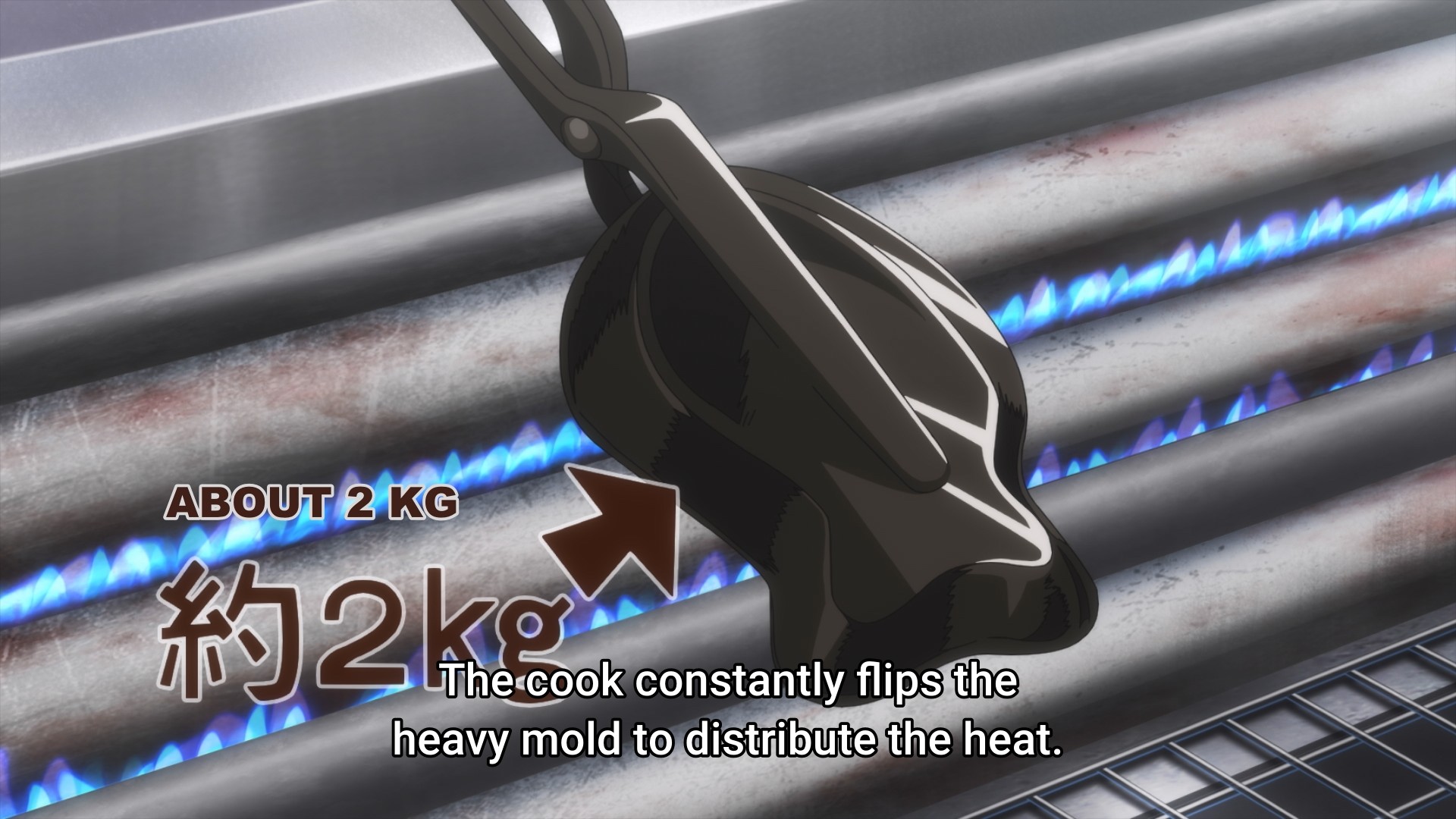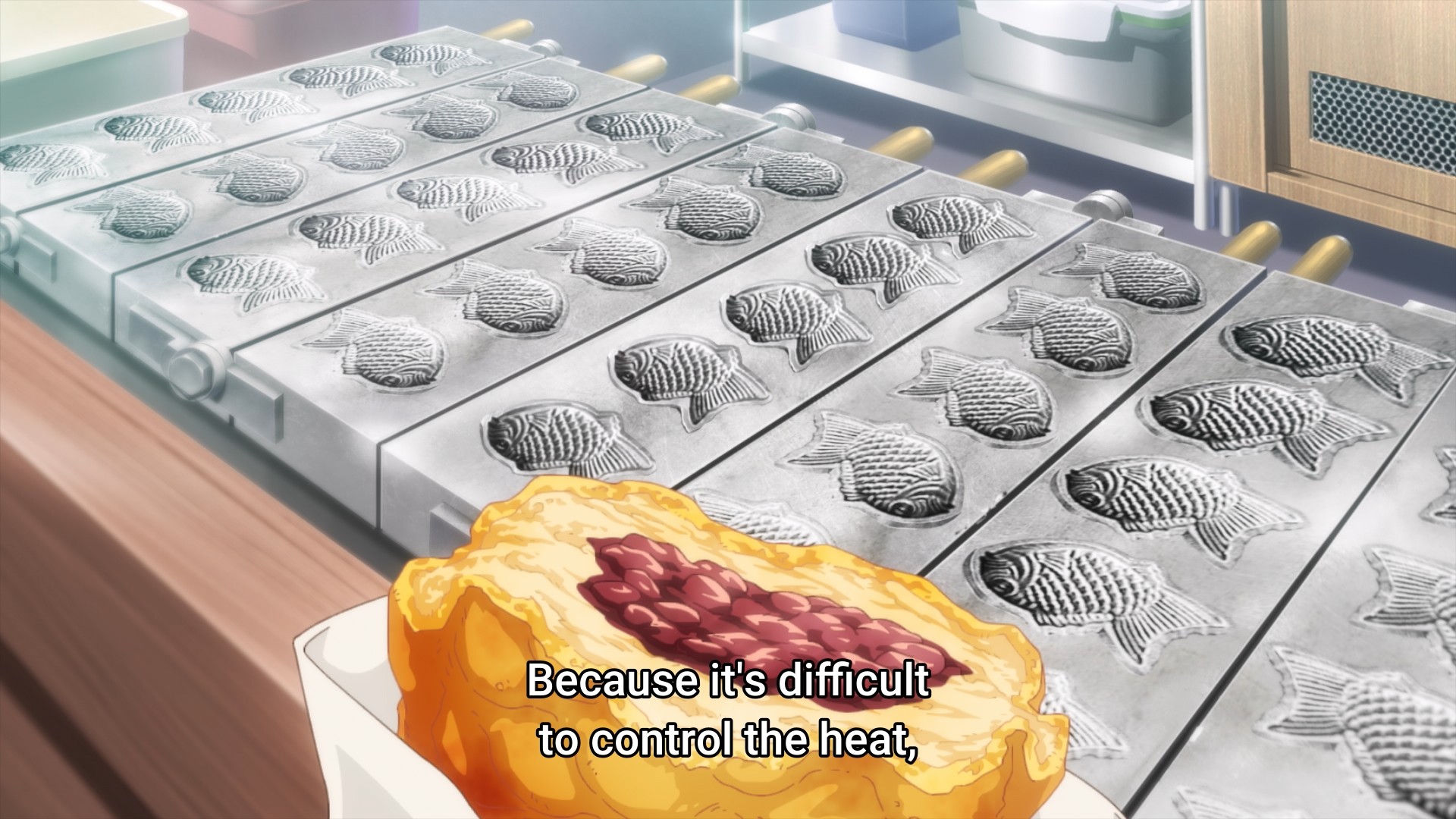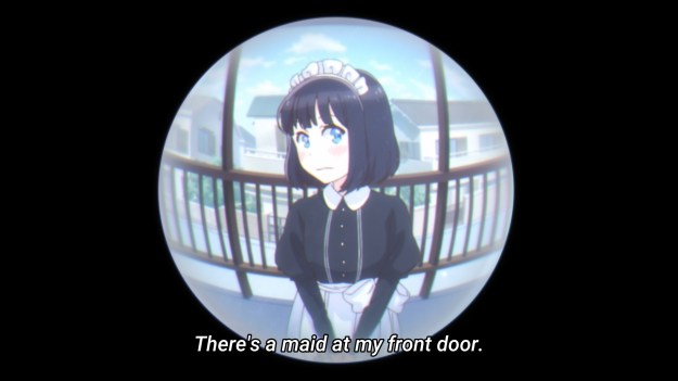 A maid finds herself marooned in Japan. Well, not really. Her employer’s mansion’s roof collapsed, so she doesn’t have a home to return to for at least a year. So what’s a girl to do? Enjoy Japanese snacks, obviously. And for some bizarre reason, she always wears her maid uniform. Why? Beats me. Anyway, we kick things off with the noble taiyaki. Our maid somehow manages to get her hands on a taiyaki that is amazingly stuffed to the gills (or tail) with filling. I’ve never seen one with a crust this thin. Apparently, this is achieved by cooking each taiyaki individually instead of doing them in one large batch. Sure, sure. I suppose that’s a mildly interesting factoid, but I’m not confident that this sort of thing can sustain my interest for an entire season.