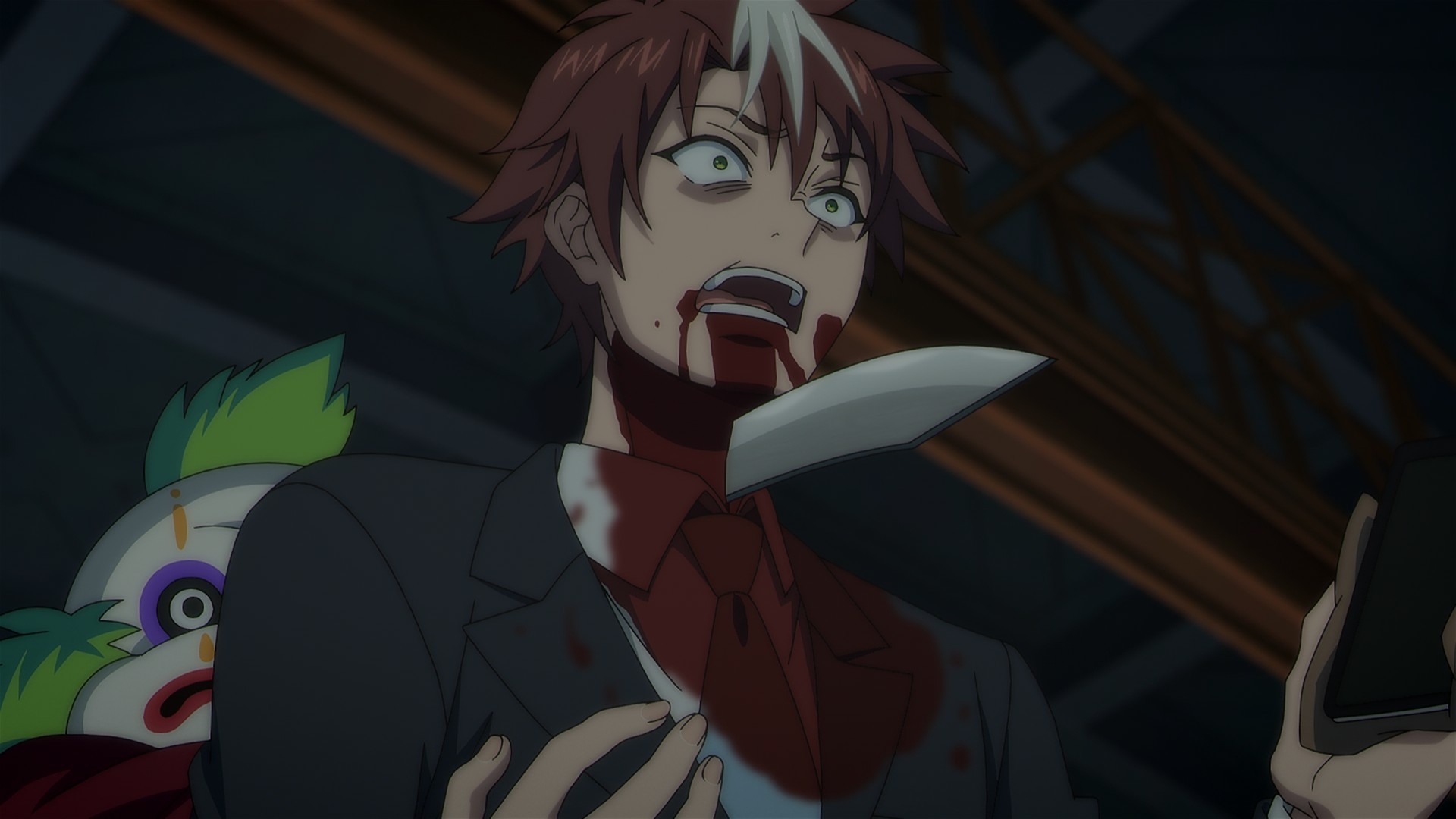 The problem with our main character being in high school is that he somehow has the freedom to just hop onto an international cruise, but that’s not even the most unbelievable part about this show. Rather, it’s the fact that Sakuya can somehow bring himself back to life after being killed. To set the stage, this adultery case is actually far more dangerous than it seems. Not only does our high school detective stumble upon a dead body in the cargo room, a killer clown suddenly comes outta nowhere and stabs Sakuya right through the neck. Oof, brutal. But before we know it, he’s alive again in his assistant’s lap. Since we only get a single episode for the premiere, the anime has yet to explain how this is possible. Hell, it might never do so. Just leave us completely in the dark as to how Sakuya has magical, self-resurrecting powers.