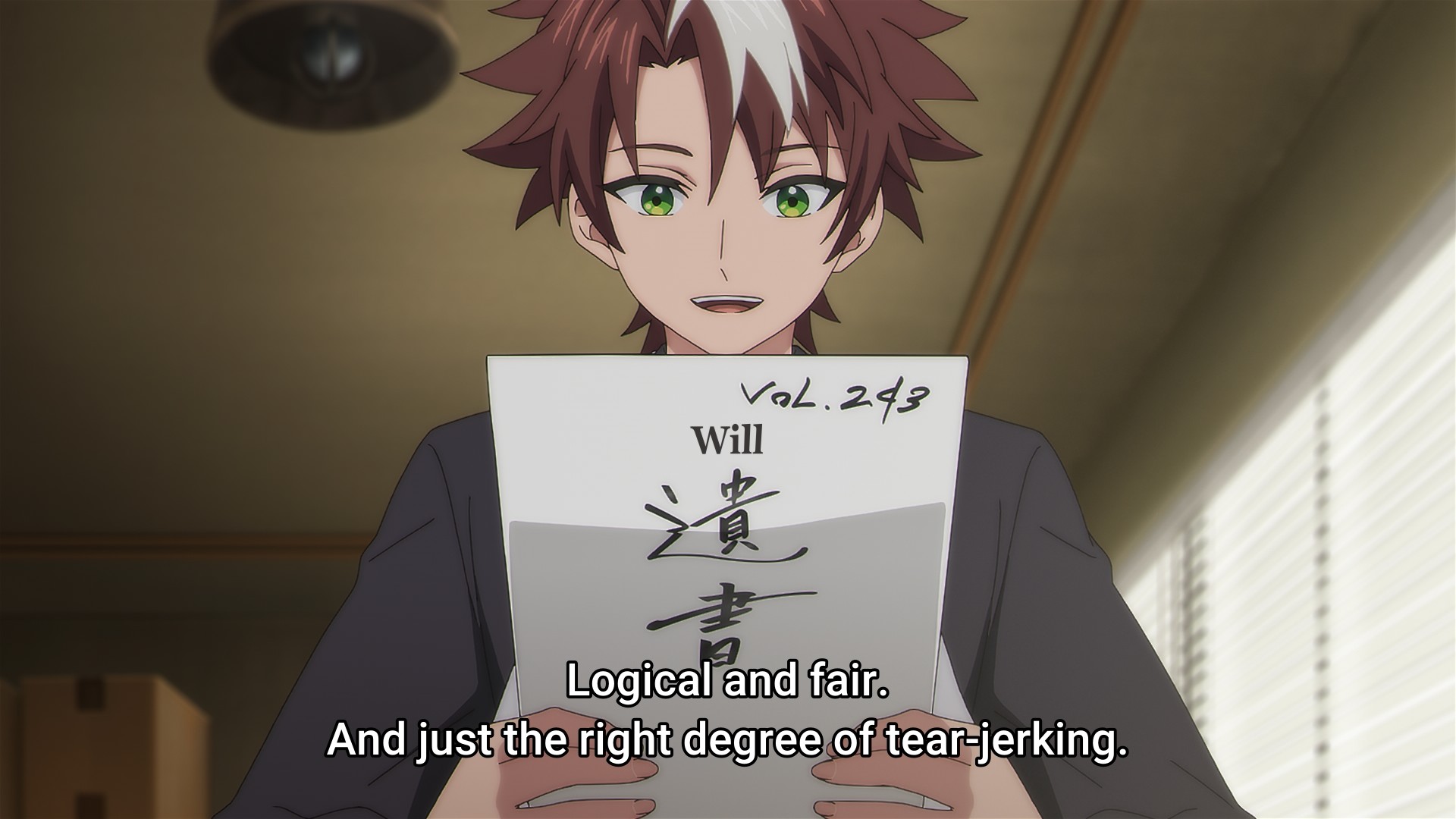 Honestly, I have no clue who the killer is. That’s why I’m not a detective. I’m not sure why Sakuya is one either. First, he hates this sort of thing. He doesn’t want to get his hands dirty like his father, and honestly, few would. So why be a detective at all? Why not just be what you are, a high school kid, and go enjoy your high school life? Who honestly wants to write a will at such a young age? I’m decades older than him, and I still haven’t considered writing one. So that’s what I’m looking forward to the most in the second episode. Not the killer’s identity or even the killer’s motive. I’ve listened to enough podcasts and seen enough Youtube videos on serial killers and bizarre mysteries. I doubt anything about the crime here will surprise me. No, what I really want to know is Sakuya’s motive for sticking with this job when he doesn’t and shouldn’t need to.