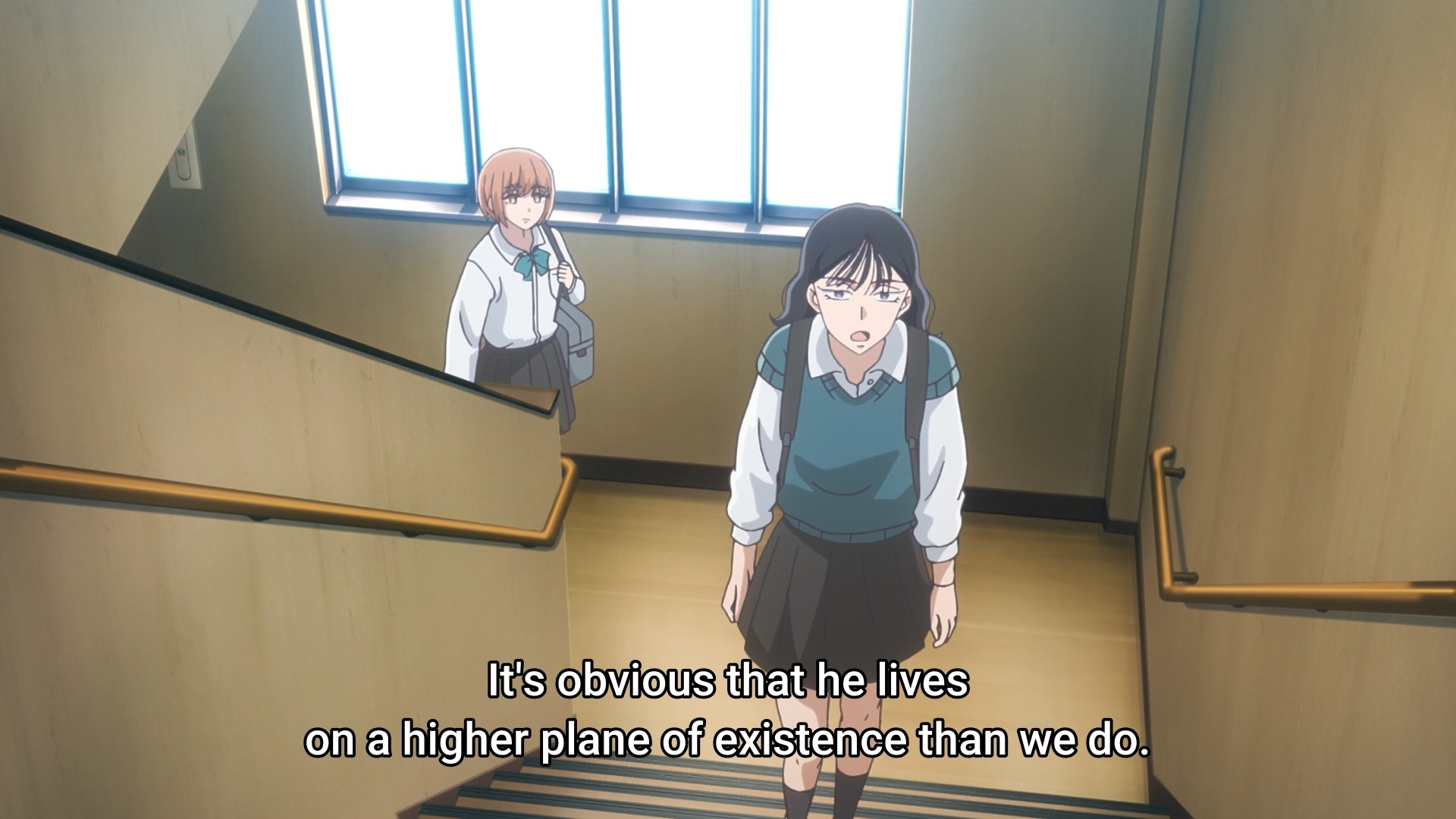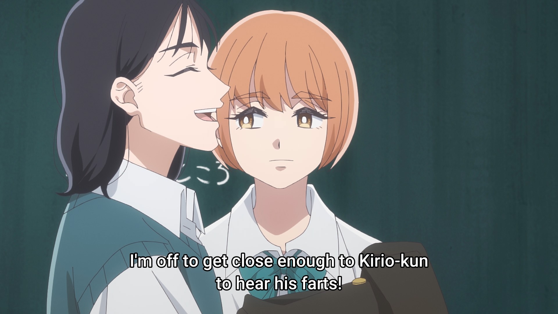 Two girls are in love with the same guy, and even though they might call themselves rivals for his affections, it’s clear that this is a bonding experience for them. They have such silly, offbeat banter that you almost wish they would just ditch the guy and explore their friendship in other ways. Not suggesting yuri or anything like that, but surely, there are more to talk about then just Kirio, right?