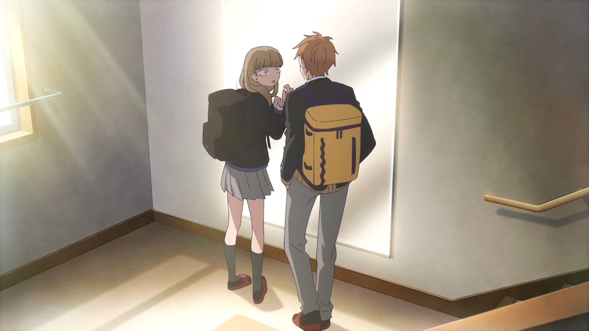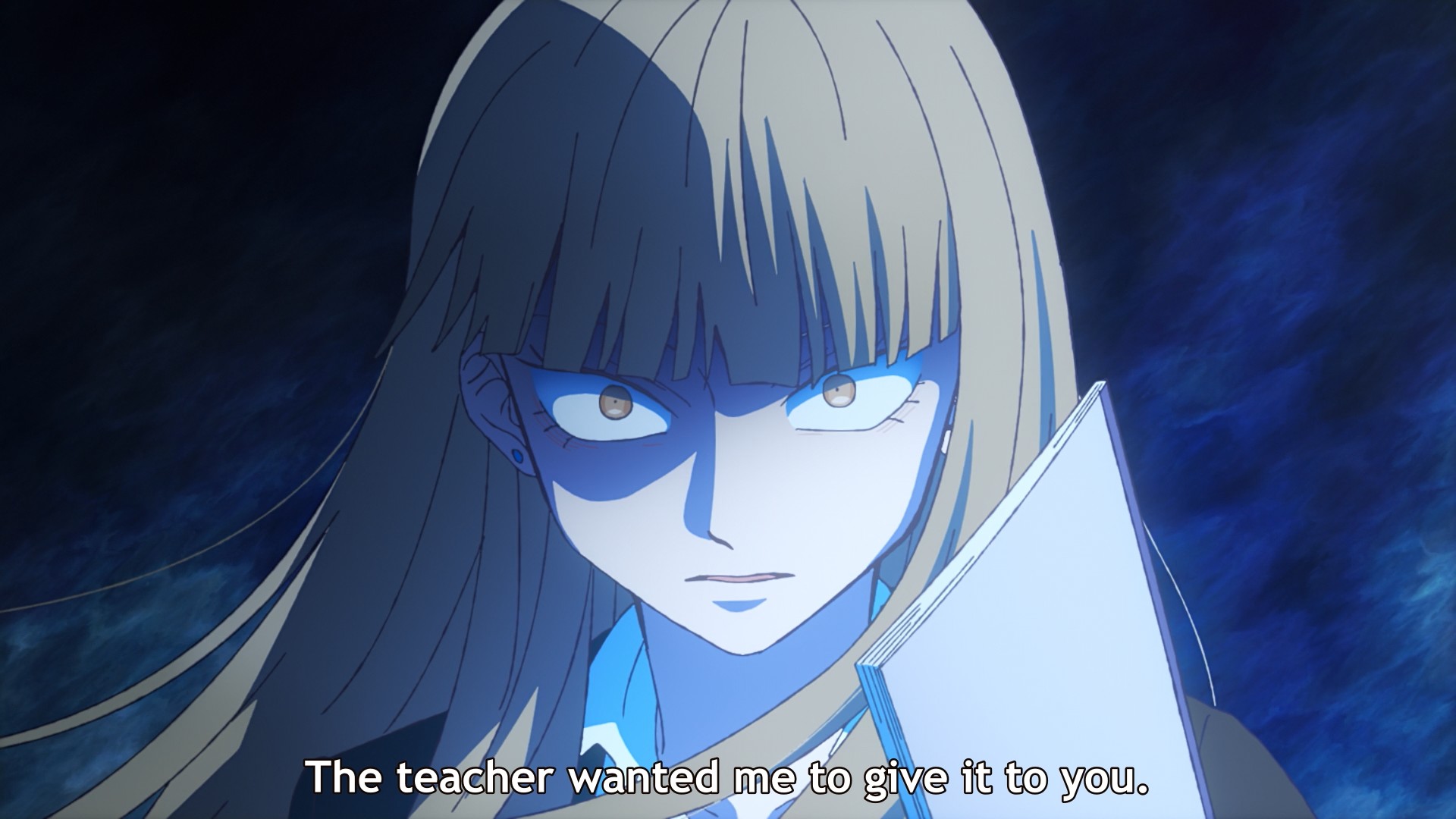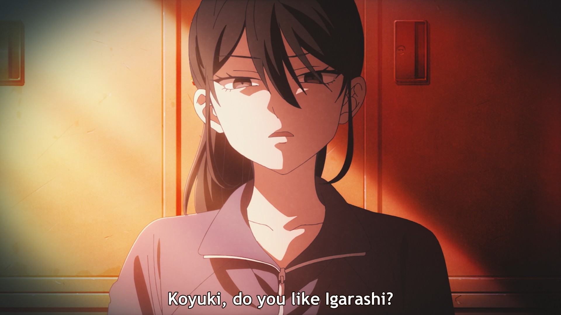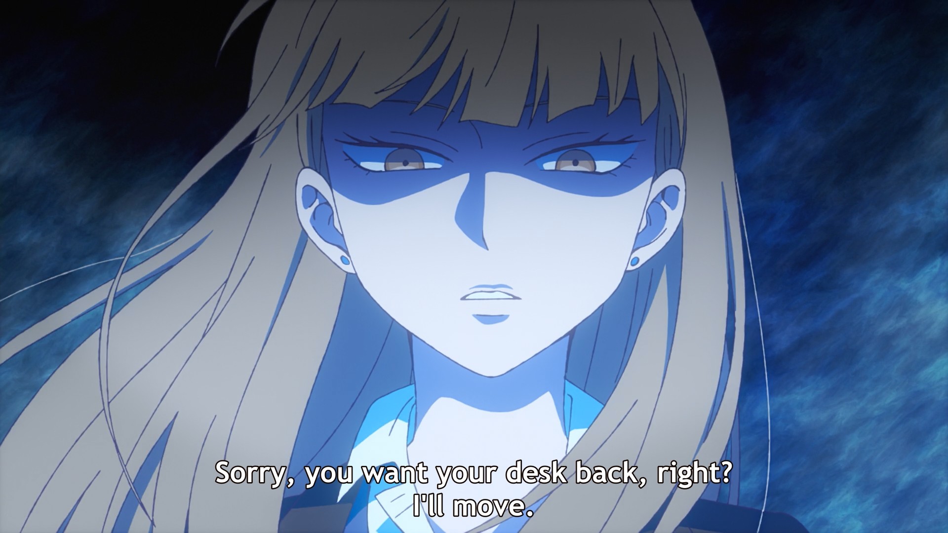 Again, I’m not vibing with the dramatics. Who gets scared so much by somebody’s eyes that they literally drop their lunch? Who cowers when someone like Koyuki walks by? I hate it when anime exaggerates. It tricks people (usually impressionable kids) into thinking that they’re main characters. That awkward kid who mean mugs his way down the hallway because he thinks all the normies are against him? You can probably blame that on edgy AMVs set to Linkin Park’s “In The End.” In reality, people don’t actually care about you to such an extent. They often don’t care about you at all. But people overreact a lot in this show. For example, Koyuki doesn’t know how to react to a guy trying to make her laugh by mimicking what she did earlier in the episode — at least, that’s what I think that’s his intent — so she gives an awkward smile before ducking away. In response, one of the guy’s friends calls her creepy. Huh? What’s creepy? The awkward smile? Again, isn’t that a bit of an overreaction? Nobody has any chill.