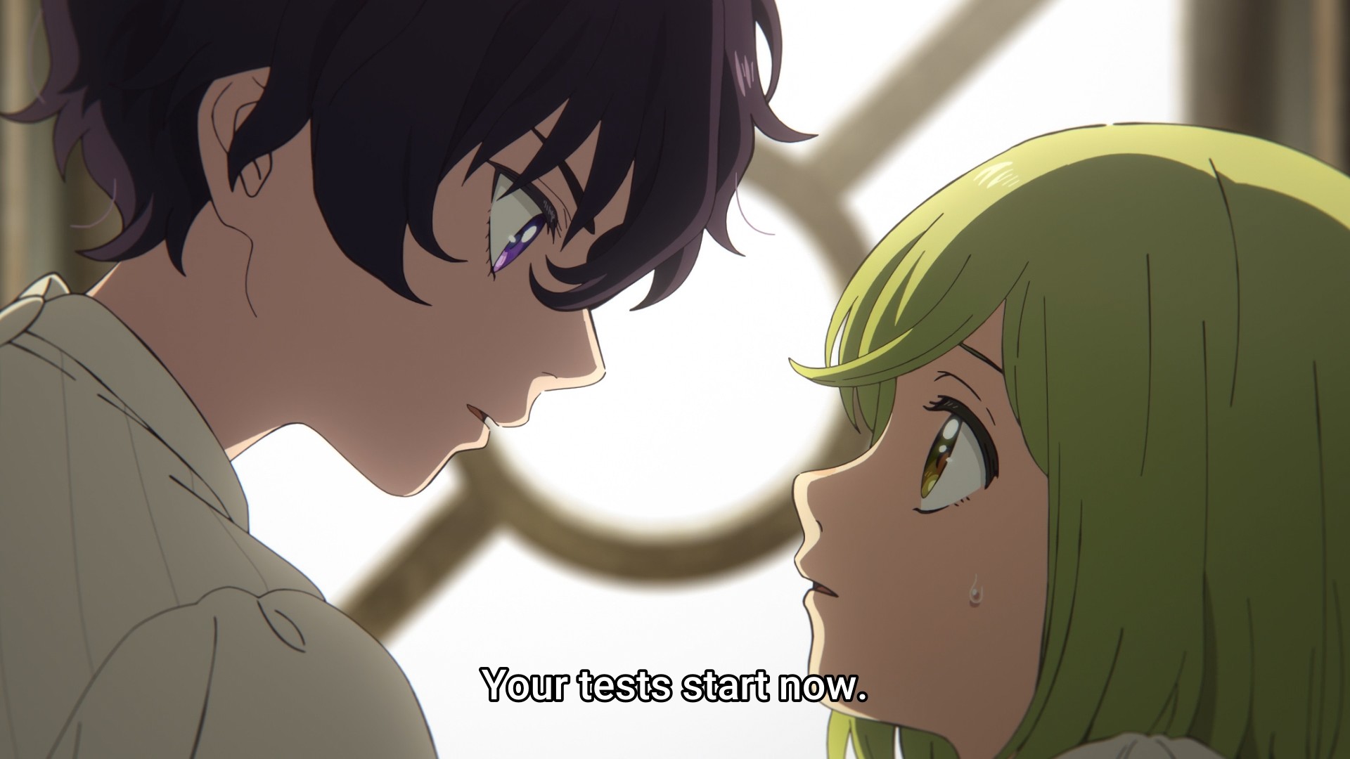 Because Coco couldn’t come to a proper understanding with her mom, she spends the next episode oscillating between being a lump of heavy-hearted guilt and beaming with boundless joy and curiosity. She’s joined by the usual cast of characters. There’s always the genki one. Then there’s the quiet, mousey one, who fittingly has blue hair. I swear, Rei-types will haunt us until the sun dies. And of course, there always has to be the mean one who rejects the main character until the latter proves herself. Then all of a sudden, the mean one becomes the undyingly loyal one — the bestie. But for now, Coco is going to be put through the wringer, because our genius witch boy thinks it’s a good freakin’ idea to leave a child in charge. Is he too dense to notice that Agott is displeased with the current situation? He shouldn’t be a guardian if he’s that clueless. Or is this one of those frustrating “ah, they’ll figure it out” scenarios?