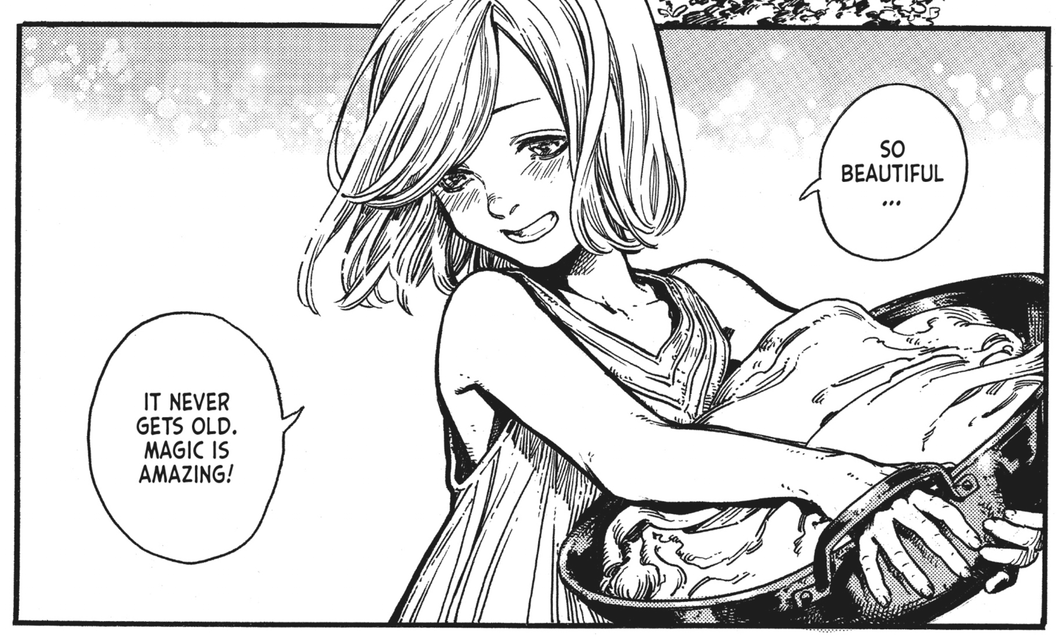 As a result, a young-looking male witch by the name of Qifrey has no choice — none! — but to take Coco in as an apprentice. It’s not entirely out of the goodness of his heart, mind you. He has his own agenda. He’s on a mission to find these heretical witches and their forbidden magic, and Coco seems to represent his first lead in a long, long time. As such, he whisks her away to his atelier where three other students are already studying under him. Look, I’m not saying Qifrey’s a bad guy… but this is anime. And how often has anime given us a young, attractive guardian several years older than the even younger main character only for said young, attractive guardian to become a love interest? How many times have I convinced myself that a series is safe to enjoy only for the author or mangaka to be like, “We just think huge age gaps are neat!” This is then followed by fervent fans writing essays upon essays of pure mental gymnastics: “Here’s why it’s actually not problematic…” I hate that we have to go there, but it’s a recurring pattern. I also want to make it clear that I have no clue what will happen. I have only read the first volume of the manga. Nevertheless, I’m a little wary of what the future might hold for these characters.