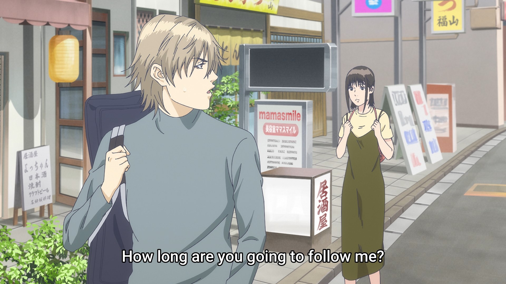 Luckily, cool anime boy is here for the rescue! All you gotta do is look up a con man about to be released from prison, then bam, instant ally! But let’s back up for a second. When you just got scammed out of 100 million yen, I would question trying to get involved with someone who literally went to prison for lying. Even the guy was like, “Girl, are you for real?” But fine, Nao is desperate, and she has no one else to turn to. She’s already 100 million yen in the hole, so it’s not like she’s got anything to lose at this point. Nao might as well put her fate in the hands of some random dude she’s never met. Nao then employs the one simple trick that always works on anime boys: following them around like a sad puppy.