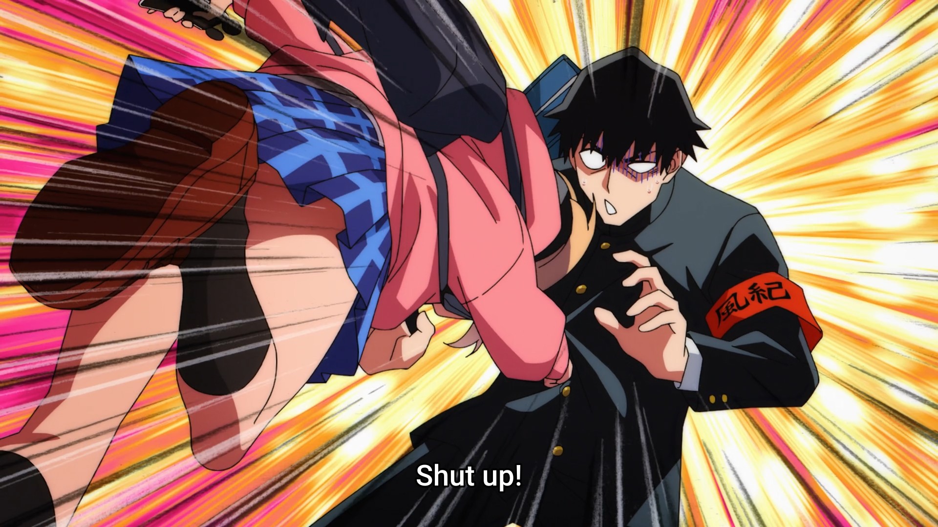 So I’m sitting here, wondering if there are hidden depths to these characters that might make future episodes a little more palatable. Or is this show just gonna remain gimmicky? Well, the story has already gone and introduced another idiot, so I think gimmicky is the route the anime is taking. One apparently wasn’t enough, so we get another stickler in the form of Yu, a former delinquent. The only difference with the new guy is that he’s obsessed about his classmates’ health. Nevertheless, he’s already making the girls swoon. So maybe that’s all this show is going to be: a bunch of idiots running around screaming at the top of their lungs about rules, but nevertheless wooing their classmates. Yeah, that sounds terrible.
