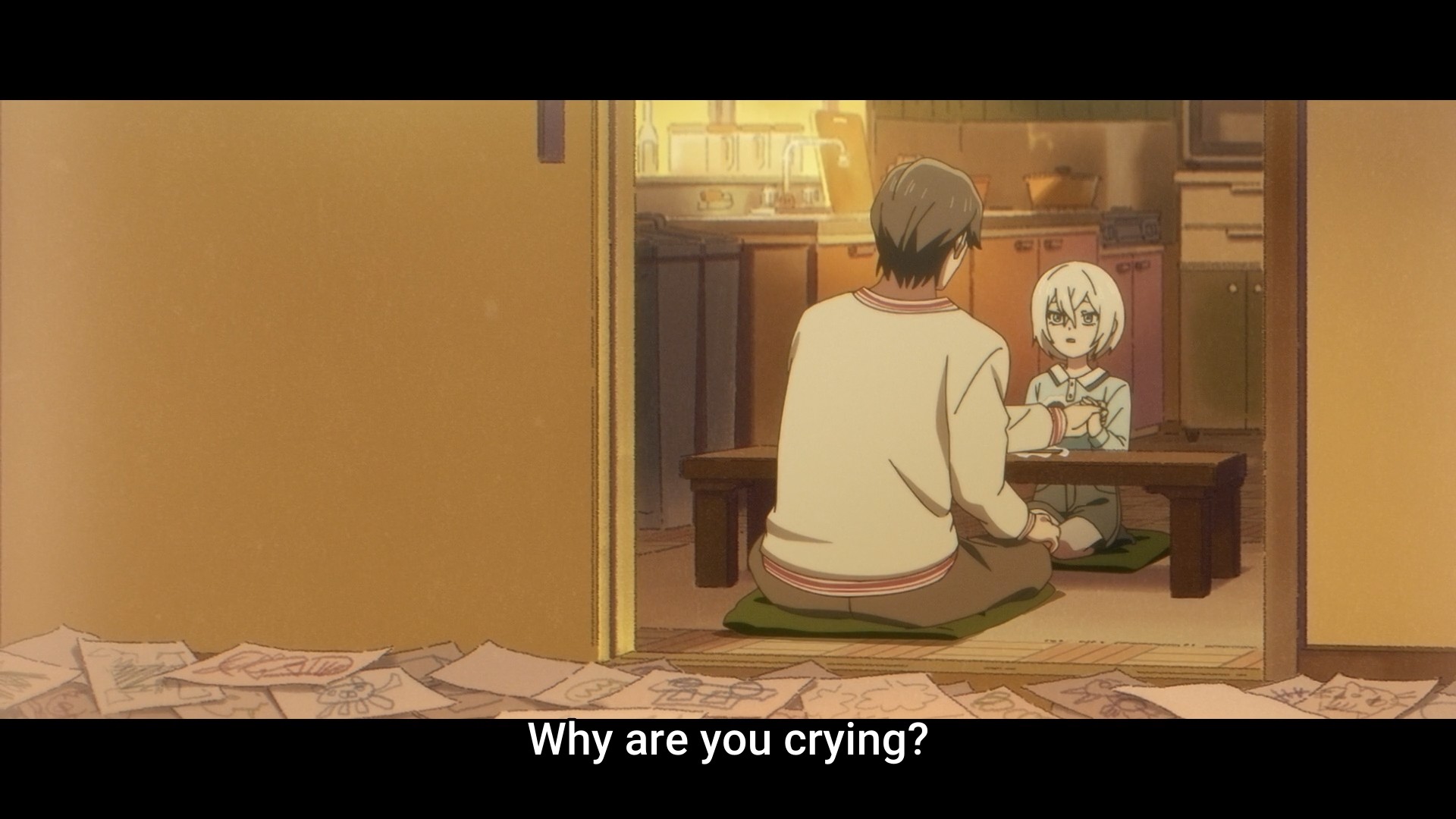 But what even is Nao? From what I can tell, she’s pure magic. Sunao conjured her replica out of thin air one day, and even though their biology is purportedly the same, Sunao can desummon Nao whenever she wants. Is Sunao obligated to keep Nao “alive?” Does a mystical being deserve to eat if she wouldn’t otherwise die without food? Does she even need sustenance? Every time Sunao has to hide her replica, the world goes completely black for Nao. Can this be considered a death of sorts? Is it even immoral to “kill” a conceptual being like Nao? This is why this show feels odd to me. I’m not exactly sure how I’m supposed to approach Nao or if I should even be invested in her as a character. Plus, why is it that Sunao can even create a replica in the first place? And is she the only one who can do this? How do we know if any of these characters are “real?” What if the whole world is just full of shut-ins living vicariously through these mystical proxies?