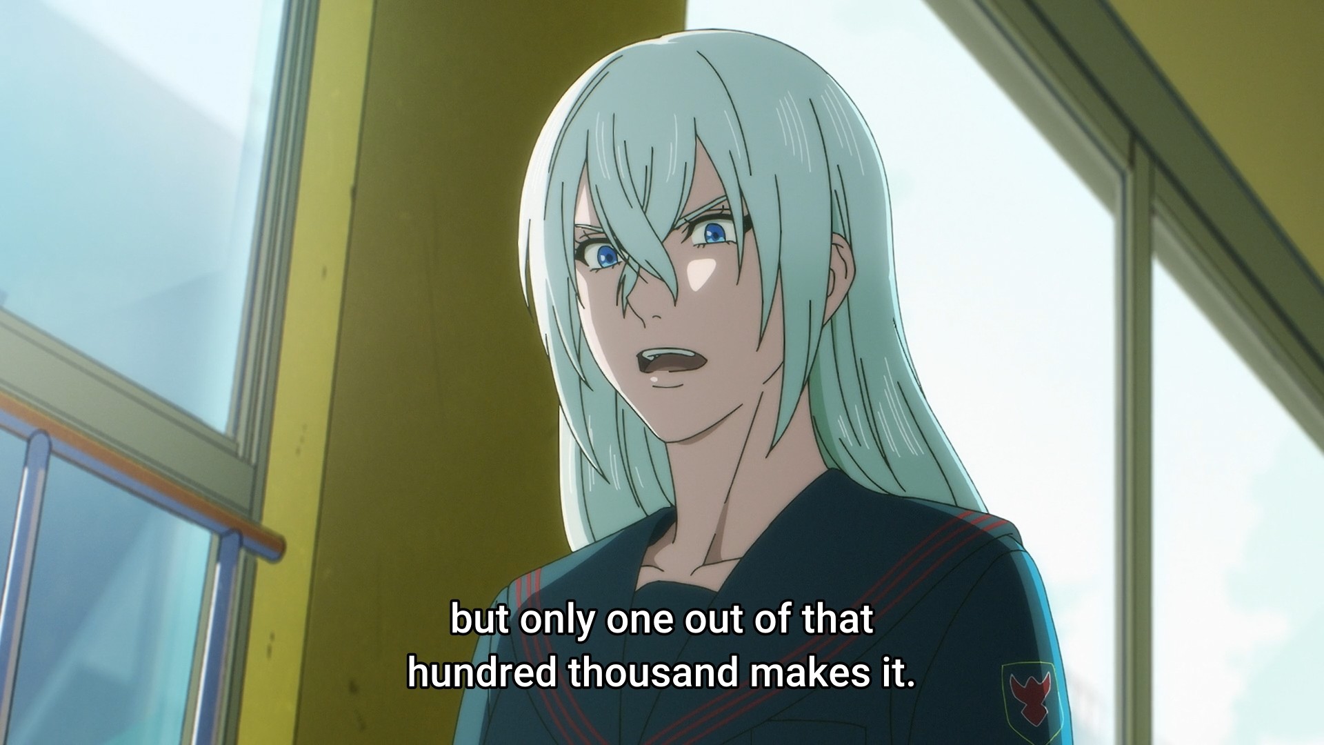 The next anime is Eren the Southpaw. Koichi is relatively talentless, and for some bizarre reason, he doesn’t think he needs any major talent as a designer. He thinks he can cobble together a bunch of minor talents and get by. Well, sure. Most of us are just average. Most of us are mediocre. But you don’t need to single out designers for that. You can apply this logic to any career. Nevertheless, Koichi’s less than inspiring outlook on life is enough to make his friend and clubmate swoon. Life comes easy for Sayuri, so you think someone like her would want to aim high. And yet, she insists that she isn’t a protagonist in her own life. She also desire mediocre nobodies with down-to-earth aspirations. What is wrong with these kids?