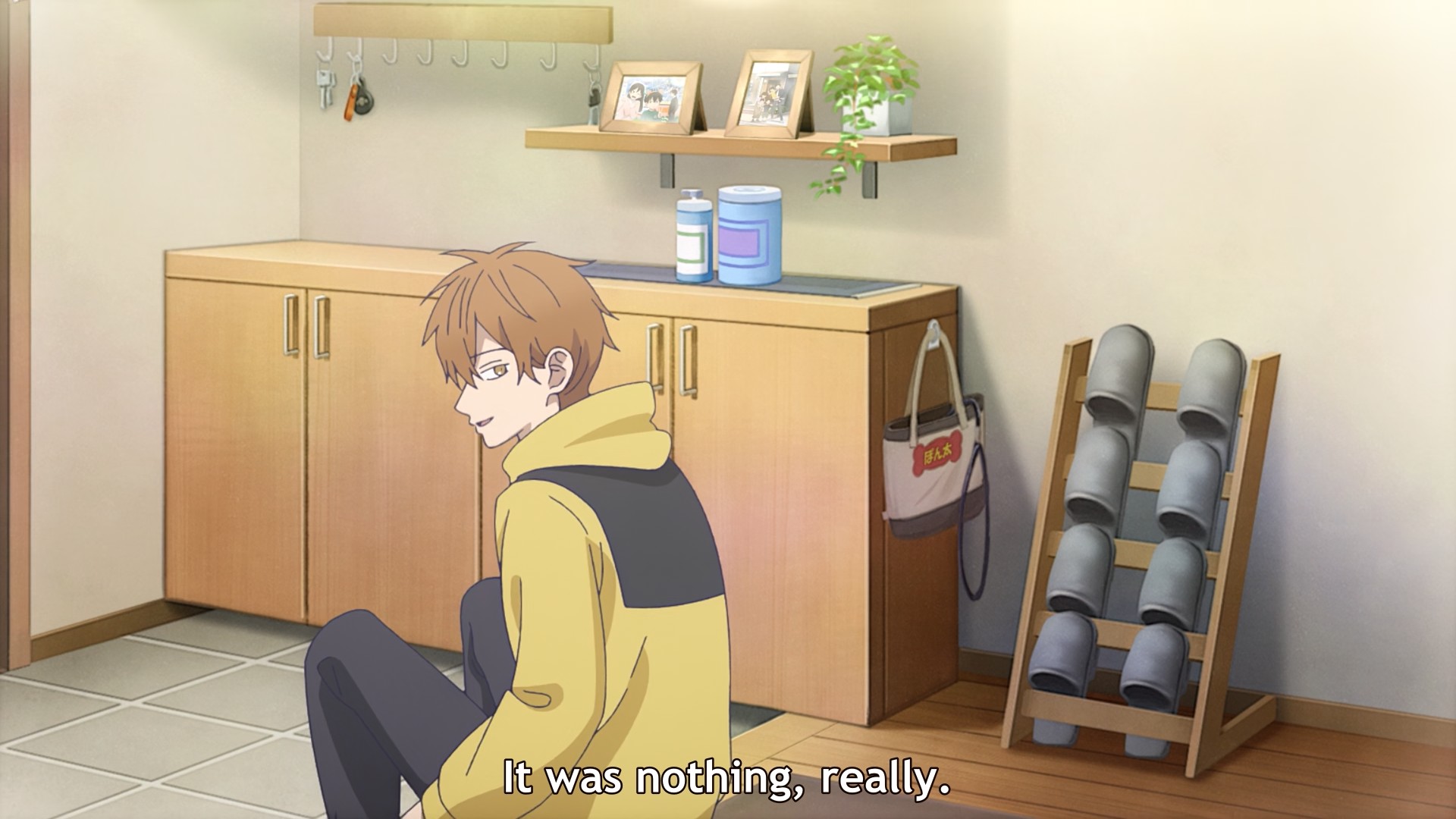 — Bold of Minato to nonchalantly pull up a desk immediately after asking if Koyuki and Giraffe Boy were dating. This freakin’ guy. Like the post’s title implies, I’m not a big fan of his energy. Giraffe Boy is kinda bland, and Minato seems like he’s got issues. I’m still hoping for no romance to blossom in this series. I can change my mind, but right now…? Meh.