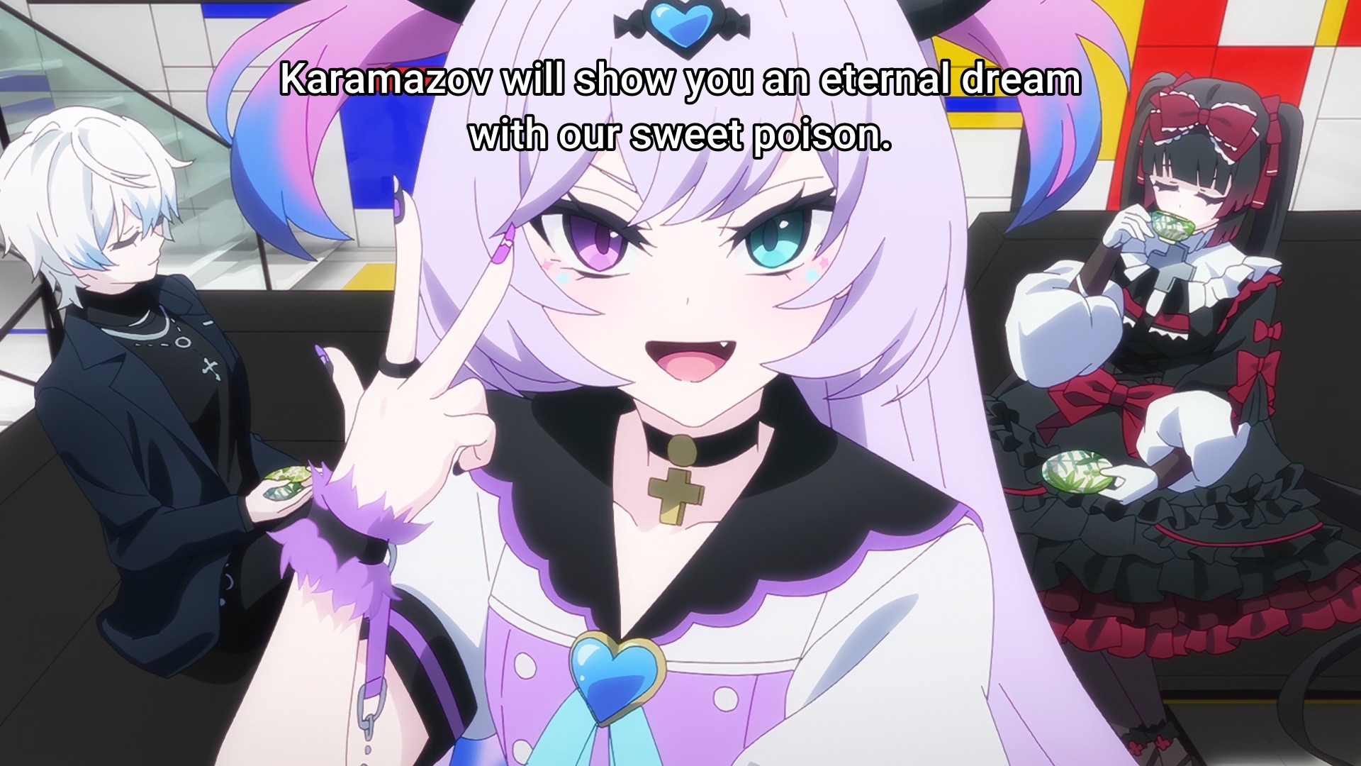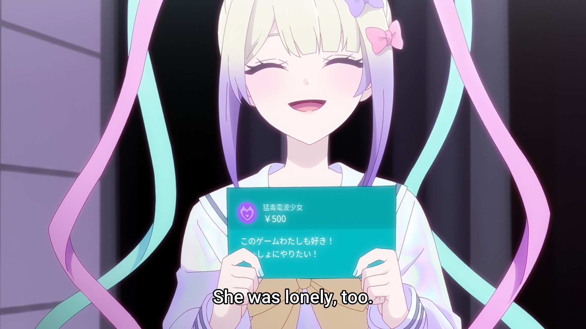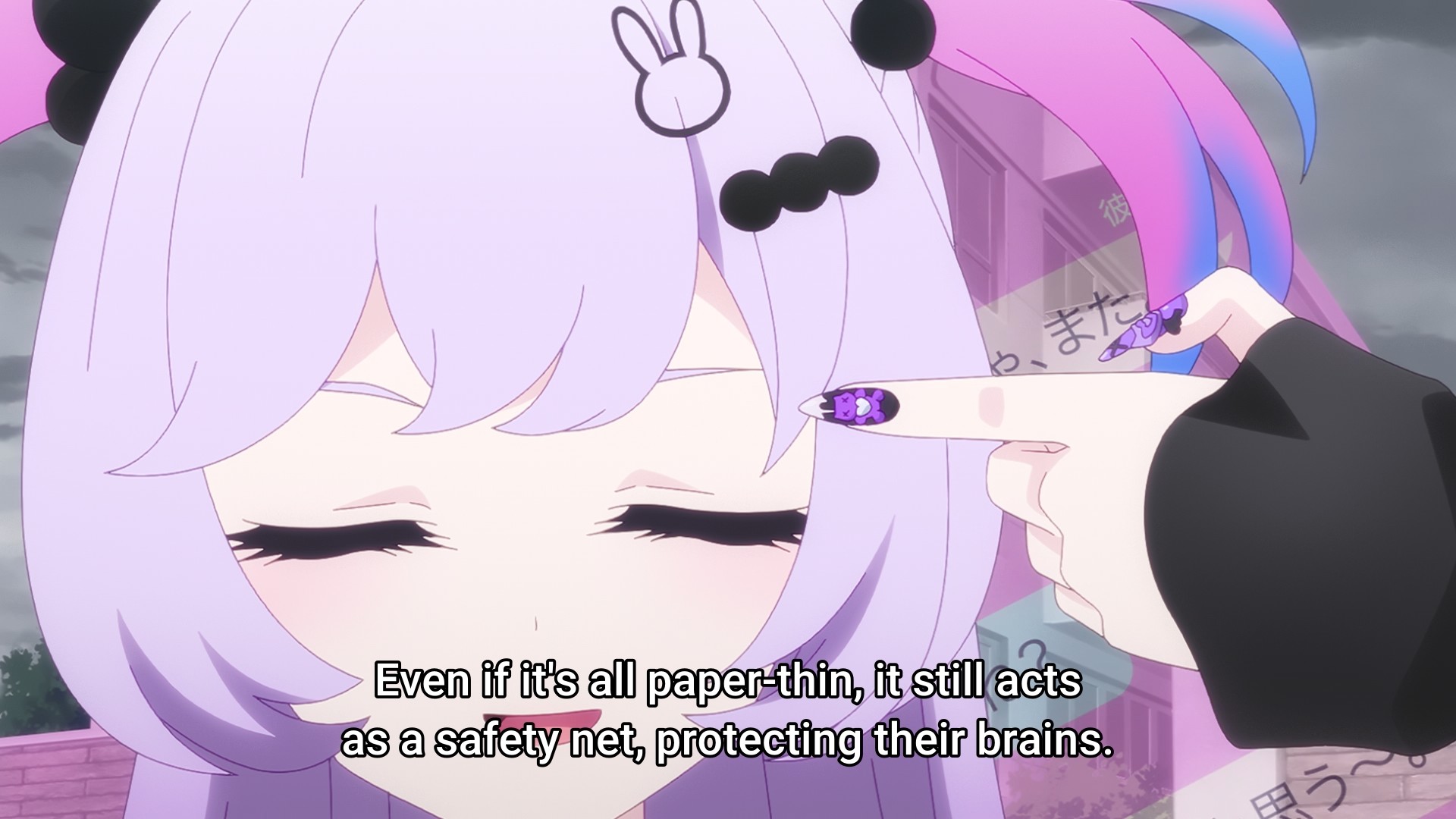 — Kache meets up with Karamazov to talk about authenticity. She almost feels like an aside in this episode. In any case, the girl can’t help but feel like she’s just selling an image. Even her youth is play for nostalgia. The streaming group, however, sees nothing wrong with this. There’s an agreed upon exchange of goods. The audience wants a false dream, so the streamers put on an act. What’s wrong with that? Only normies start crying about fakeness, insisting that they’re not crazy.