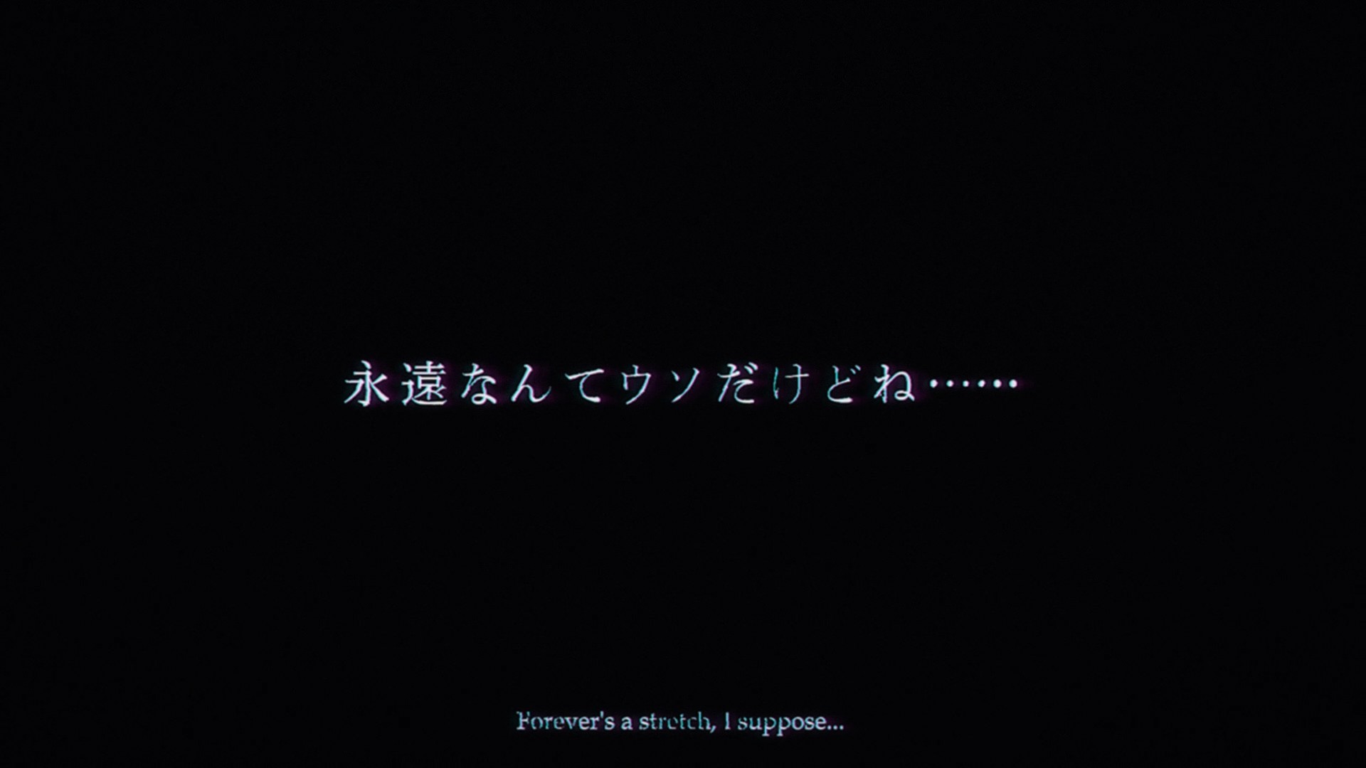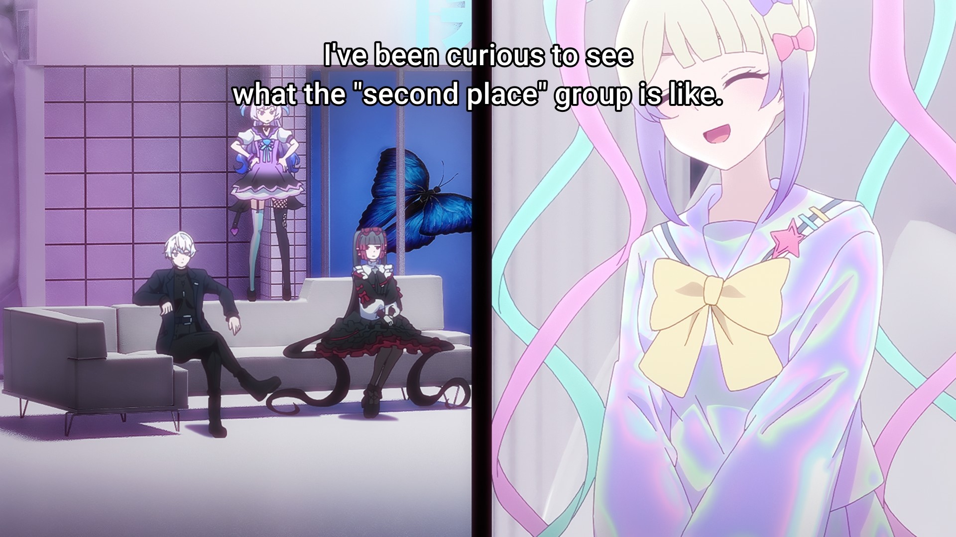 Ame is always showering her producer with adoration, but we never see him. Is he actually there? Is he even still alive? Is he just us, the actual viewers and not the simulacra in the show? Then a small dose of reality comes through when Ame admits that nothing lasts forever. Not even the producer’s love, not her, not this anime.