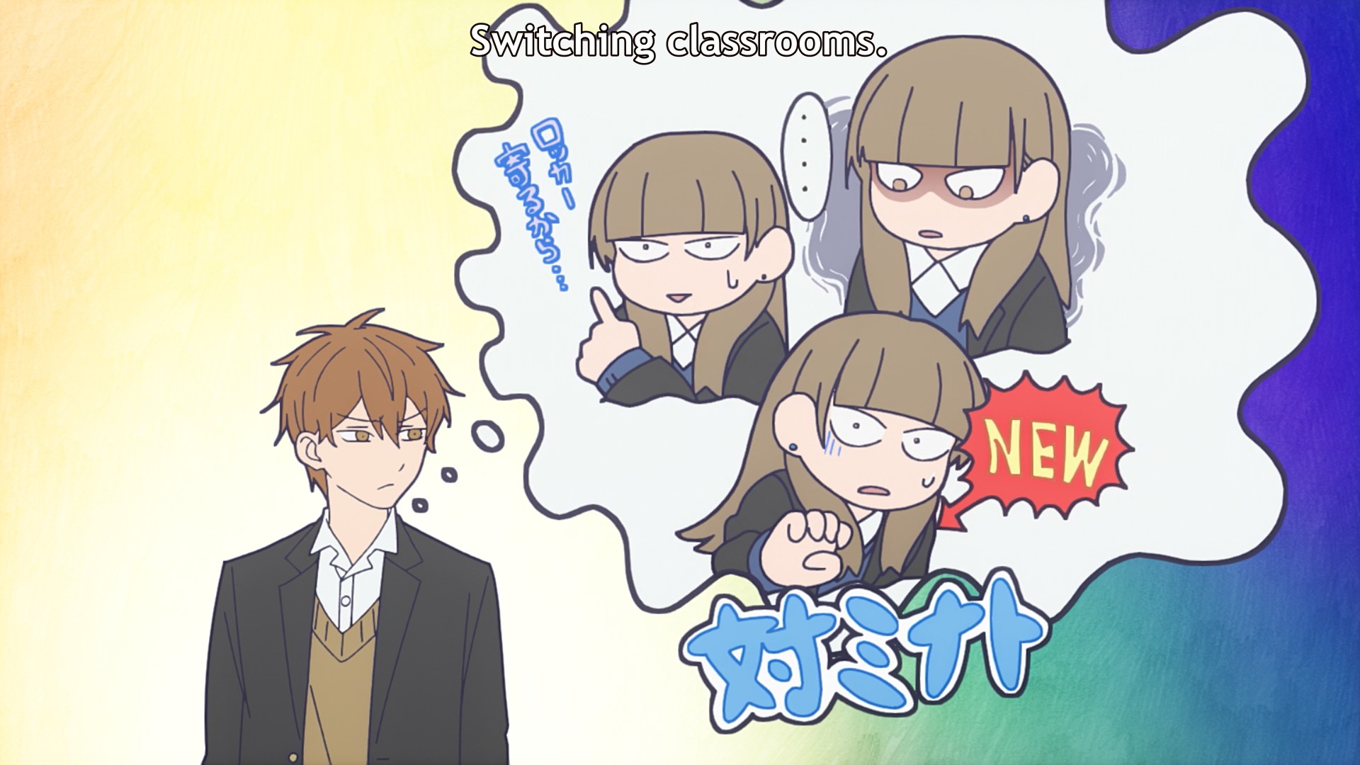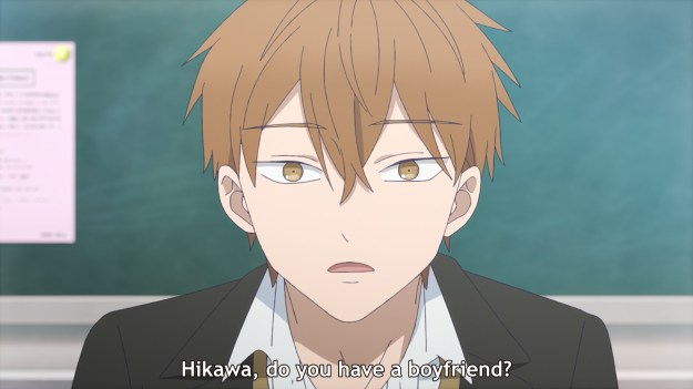 Similarly, Koyuki doesn’t communicate. Instead, she starts jumping to conclusions, wondering if perhaps Miki has feelings for Minato. She jumps to conclusions again near the end of the episode when Miki gives Minato a dirty look. Oh man, I’m feeling exhausted already. Look, there are so many reasons why Miki might be bothered that Koyuki and Minato know each other, and it doesn’t have to be love. Isn’t it kinda bad that you can’t even imagine what your childhood friend is thinking? But fine, it happens. So you can at least talk to her, right? I mean, if it concerns you that much, then freakin’ ask your friend! You’ve known her for years, so what the hell? I would just take the direct approach. Ask Miki what’s up. It’s the least you could do. As for Minato, tell him to back off. But instead, Koyuki thinks it would be best if she backs off, i.e. withdraw into her shell. But even then, she doesn’t properly protect herself. He asks for her contact info, so she just gives it to him! This show is going to get on my nerves, because the only person with a spine is the slimiest dude on campus. If you’re going to withdraw, then withdraw! Don’t back down!