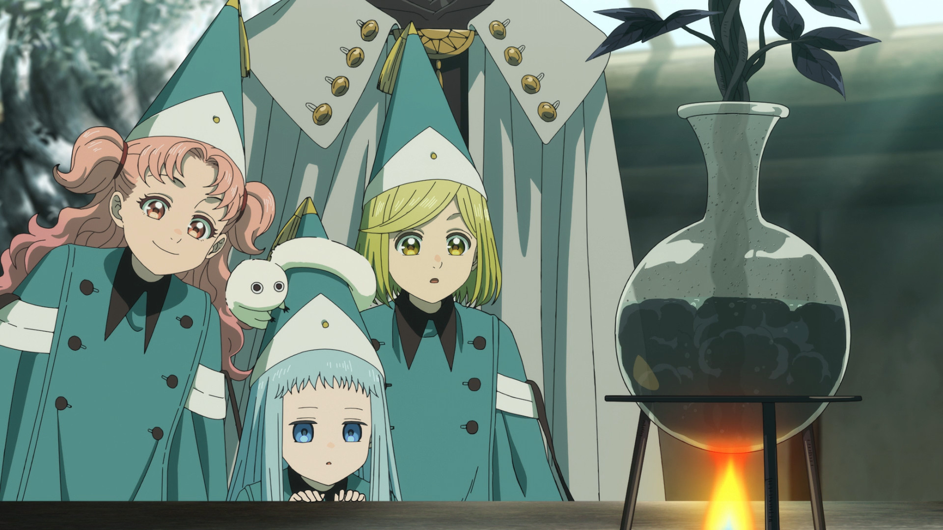 Even with the remaining three, Qifrey isn’t really paying close attention. Tetia has to make sure Coco doesn’t fall too far behind, but our heroine is already distracted as someone or something is calling to her. At the shop, Coco gets to see how magical ink is extracted from a certain tree. She was about to try out some wands when she sees a certain Brimmed Cap staring at her through a window. Desperate to learn anything that might help her save her mother, she bursts out of the shop and chases after the Brimmed Cap on her own. Tetia and Richeh quickly follow after her. They know she’s new to this city. They know they can’t let her wander the streets on her own. They even end up dragging Agott with them. Meanwhile, Qifrey is… doing what, exactly? Again, why does he not have an eye on his students? For fuck’s sake, man. Could he have prevented any of this from happening? Maybe, maybe not. But at least he’d be able to respond immediately rather than wait until sundown.