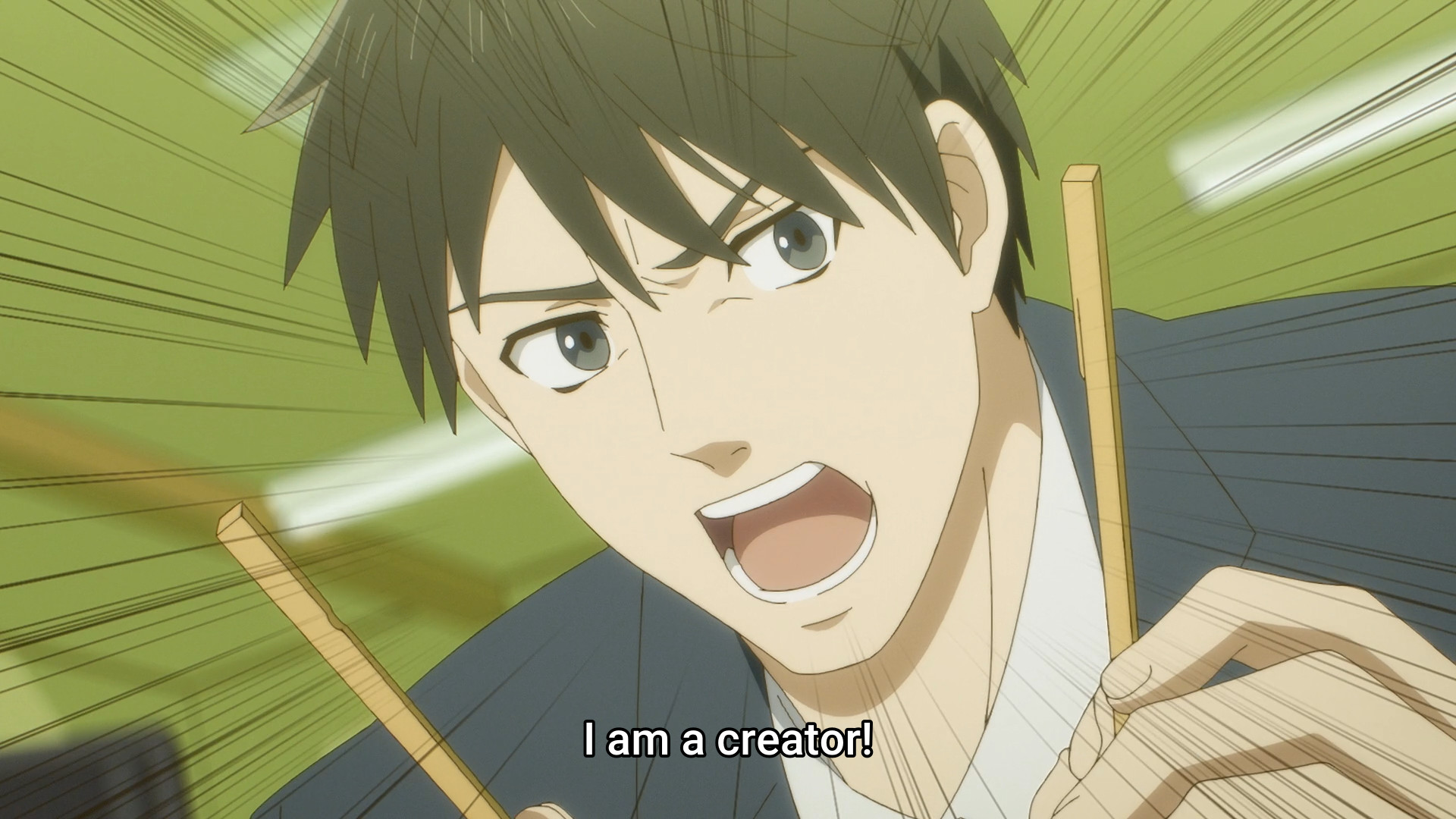 In addition to Shiguma agreeing to officially become her master, Akane also meets Kyoji, who will serve as a mentor of sorts. He doesn’t take any bullshit, so he immediately scolds her for even thinking of ditching class to practice the craft. I feel like her mother should’ve hammered her on this, but whatever, it’s fine. I personally still think she should go to college after she graduates. There’s no reason why she can’t juggle both at the same time.