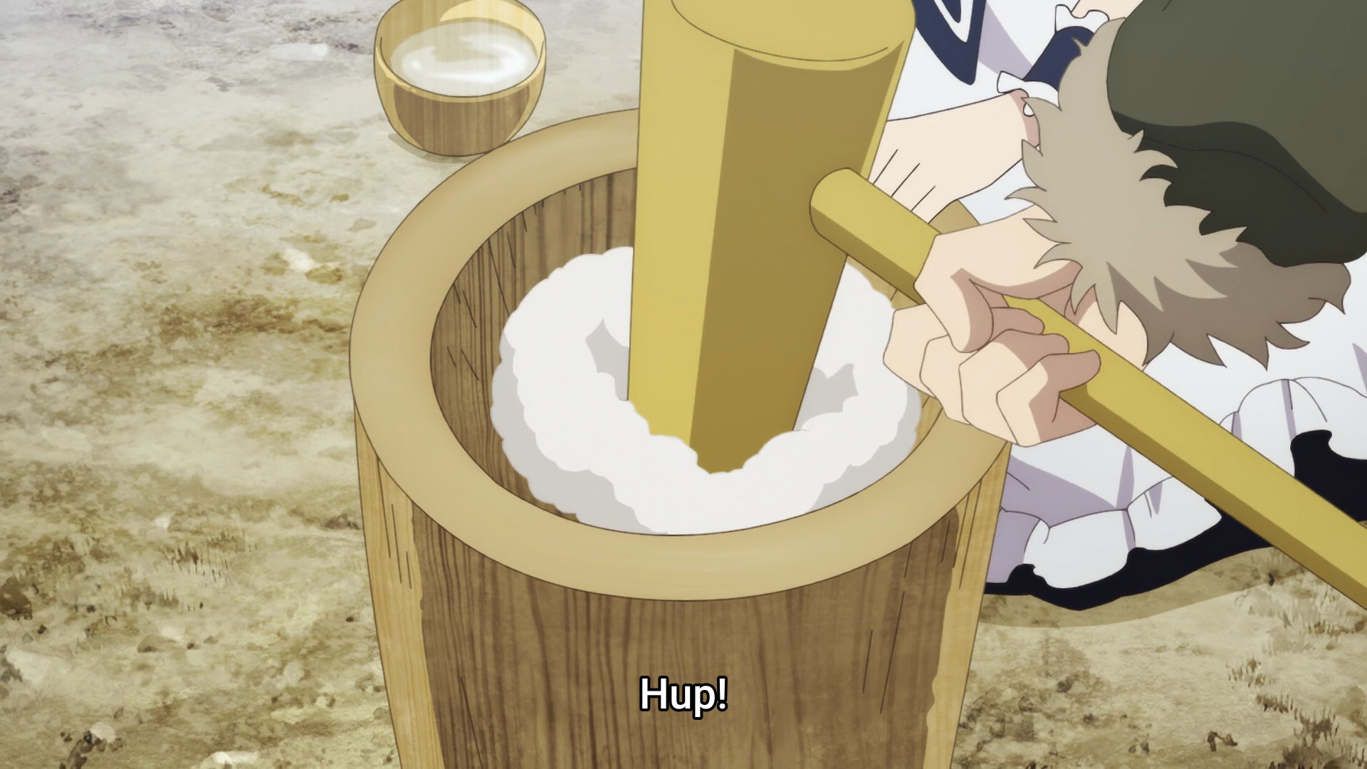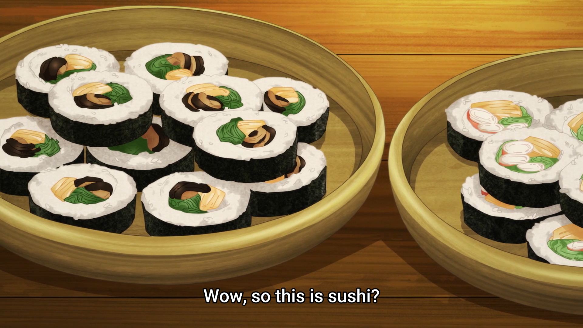 When a non-violent isekai runs out of ideas, they always fall back to the ol’ reliable: reinvent Japanese cuisine. So this week, the MC teaches his girls how to make mochi, seaweed, and then finally sushi rolls. Can’t wait to see what they learn to make next! I remember watching another generic isekai where the MC went to great lengths to reinvent soy sauce. Hell, it might have been this one. Who can remember anymore? They all blur together anyway.