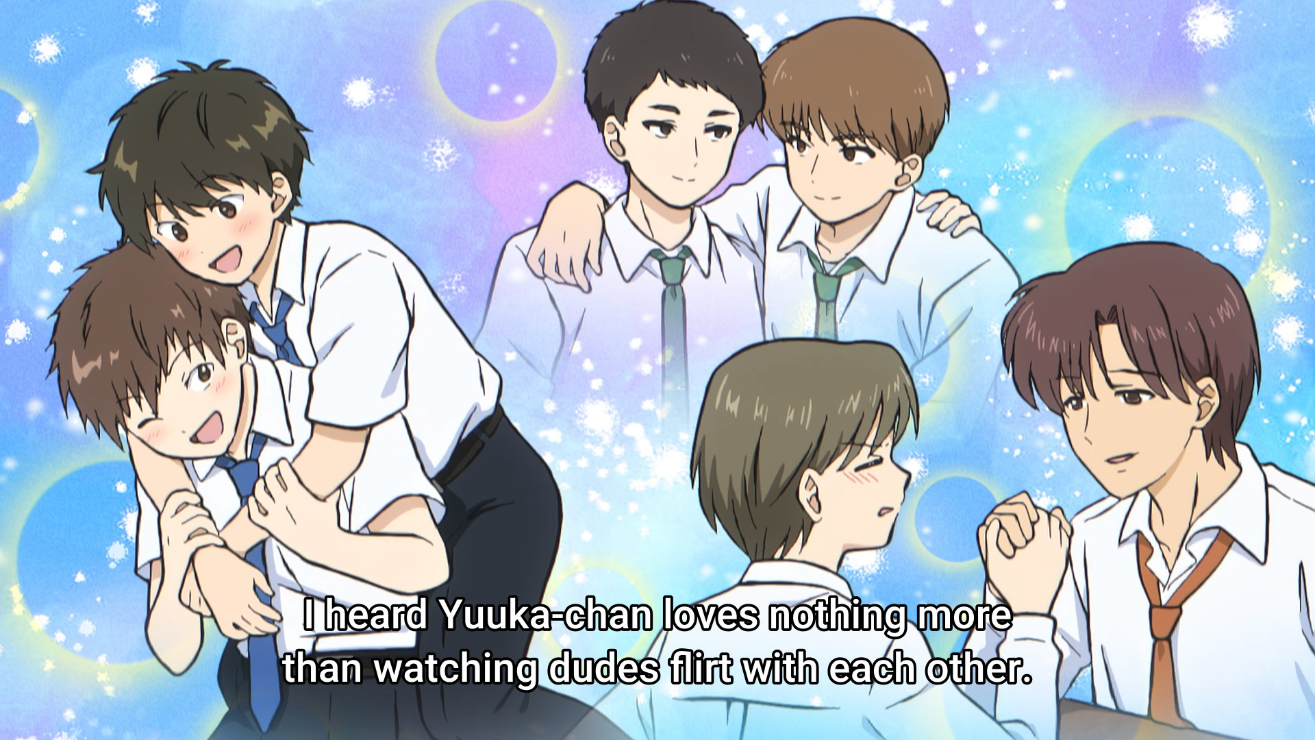 Nakamura is jealous when another classmate gets all touchy-feely with Hirose. Great, he’s possessive even though they’re not even officially friends yet. Even worse, Hirose is only sitting in the new guy’s lap, because the latter is gaybaiting to get a girl’s attention. How dumb can you be? Oh my god, you and Hirose are so into each other! You gotta date me… says no sane woman ever. Unfortunately, she isn’t sane.