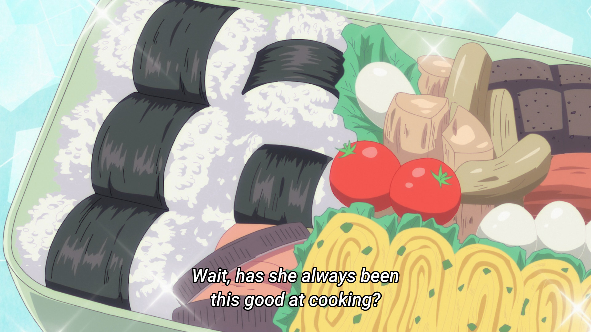 By the way, this is probably the ugliest bento I’ve seen all season, which probably also makes it the most realistic bento I’ve seen all season.