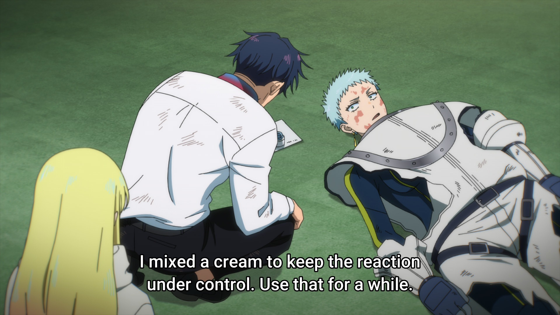 For the time being, Touya is still going forward with his plan to be an asshole, i.e. he wants to swipe everyone’s powers. I’m usually not a big fan of villain protagonists, so depending on how this turns out, I might drop the show. I just think the world’s shitty enough as it is, so I don’t want to see jerks succeed. But hey, it’s early and despite his words, Touya still protected Funasaka. So we’ll see. Maybe he’ll be a villain turned good guy in the end.