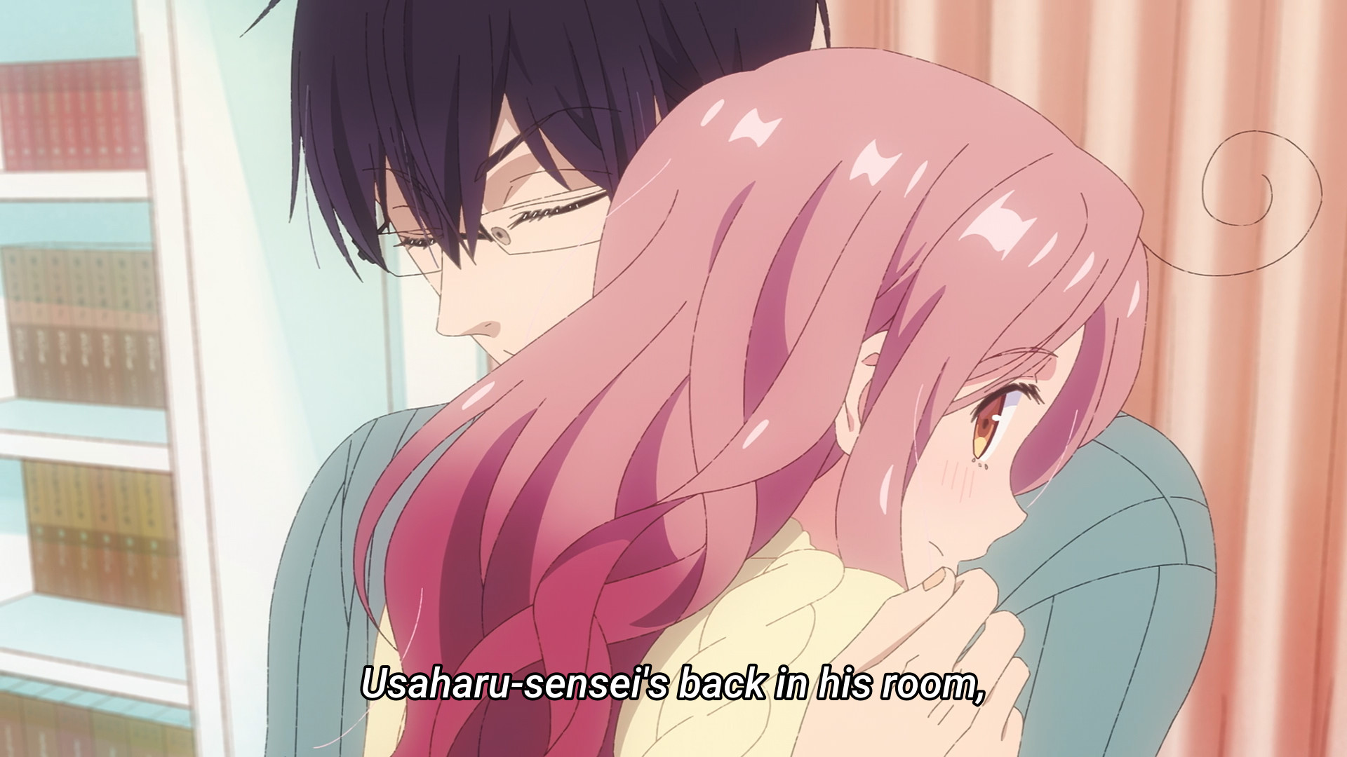 In the other half of the episode, Dumb and Dumber goes snoopin’, because Satsuki won’t tell them what he does for a living. Dumber kicks down a locked door to reveal… just a treasure trove of horror related stuff. Books, models, props, you name it. That’s it? That’s what he was ashamed of? In return (and maybe as an act of penance), Rinko reveals that she likes to read children’s books. Okay. I mean, the core message is fine. Be true to who you are and don’t be ashamed of your interests. But the packaging is the problem. We still have a jackass who broke down two walls out of anger. We still have a shady guy volunteering to be Rinko’s boyfriend even though he barely knows her (as far as we know). We still have a girl who is willing to be someone’s gofer (read: unpaid) just because she likes the manga they write. Meh.