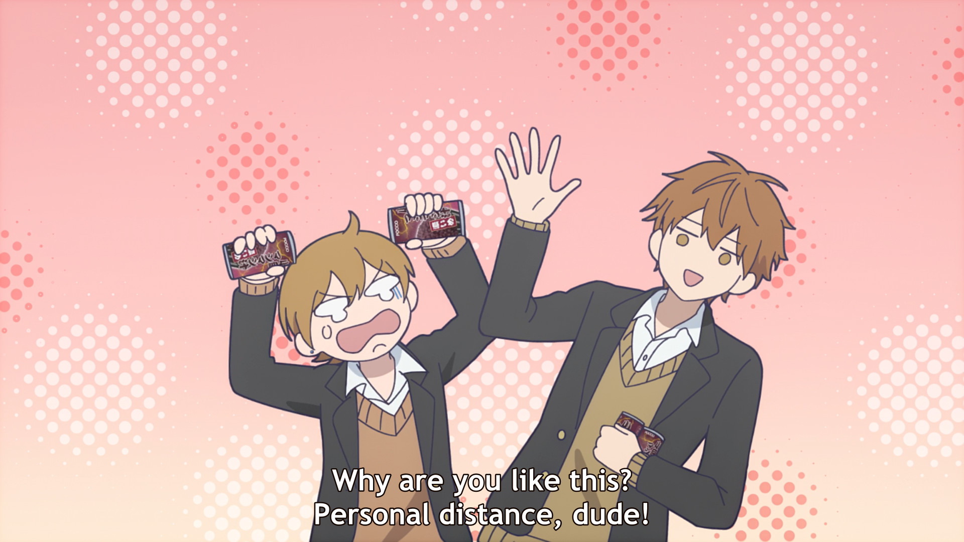 After the exams, Minato once again invites himself to a group hangout. Not only is he so intrusive, he’s also just so touchy-feely. No one ever actually extends Minato a personal invitation, so we gotta ask ourselves if anyone actually wants him there? I guess Miki did say she wants to be friends with him on equal levels, but she’s not actively pursuing the friendship. And Giraffe Guy is too chill to kick up a fuss one way or another.