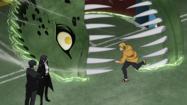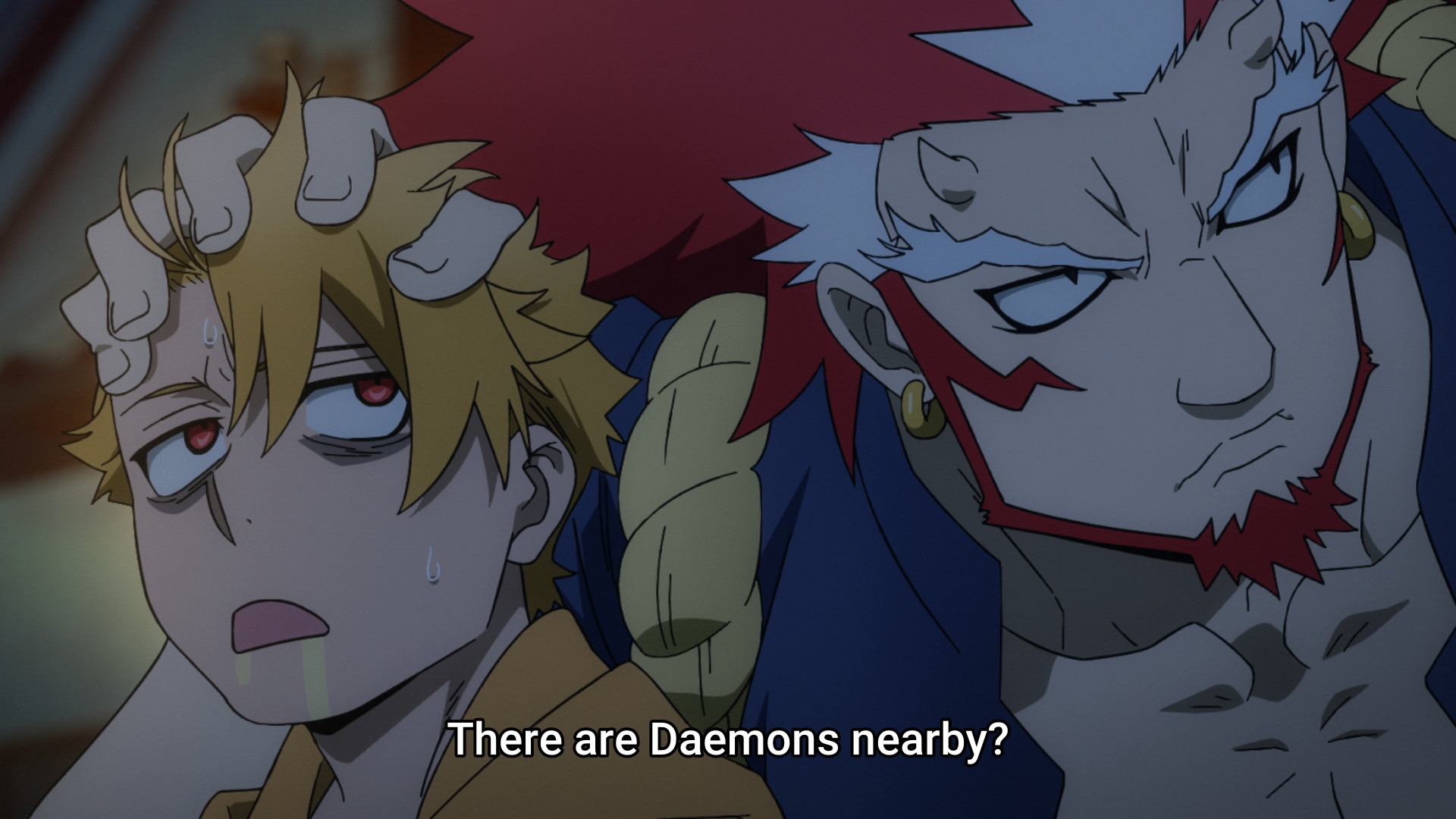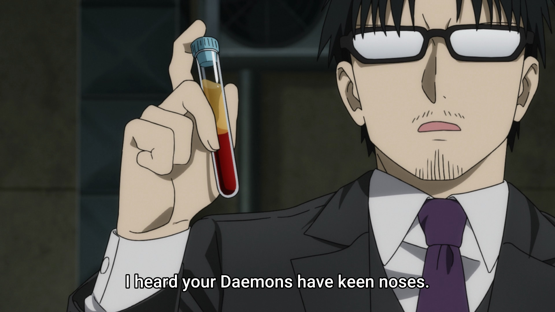 So I guess all Yuru had to do is tell his Daemons to go look for Asa and they will do exactly just that. Convenient. But they don’t find Asa. Instead, they find Jin, who just happens to be carrying a vial of Asa’s blood and plasma around? Hm. Wonder if she handed them over willingly. Charging in sounds reckless, which is probably why Yuru gets captured immediately. It’s clear that Yuru didn’t really have much of a plan. Hell, he hasn’t even properly processed the attack on his village, so he loses his cool. The sight of his sister alone (it was really the angler fish) is enough to boil his blood. It feels like he should’ve waited at least a couple of days before embarking on this one-man (and two Daemons) mission. Or better yet, Hana and Dera should’ve talked to him about it. They’re not much for caretakers.