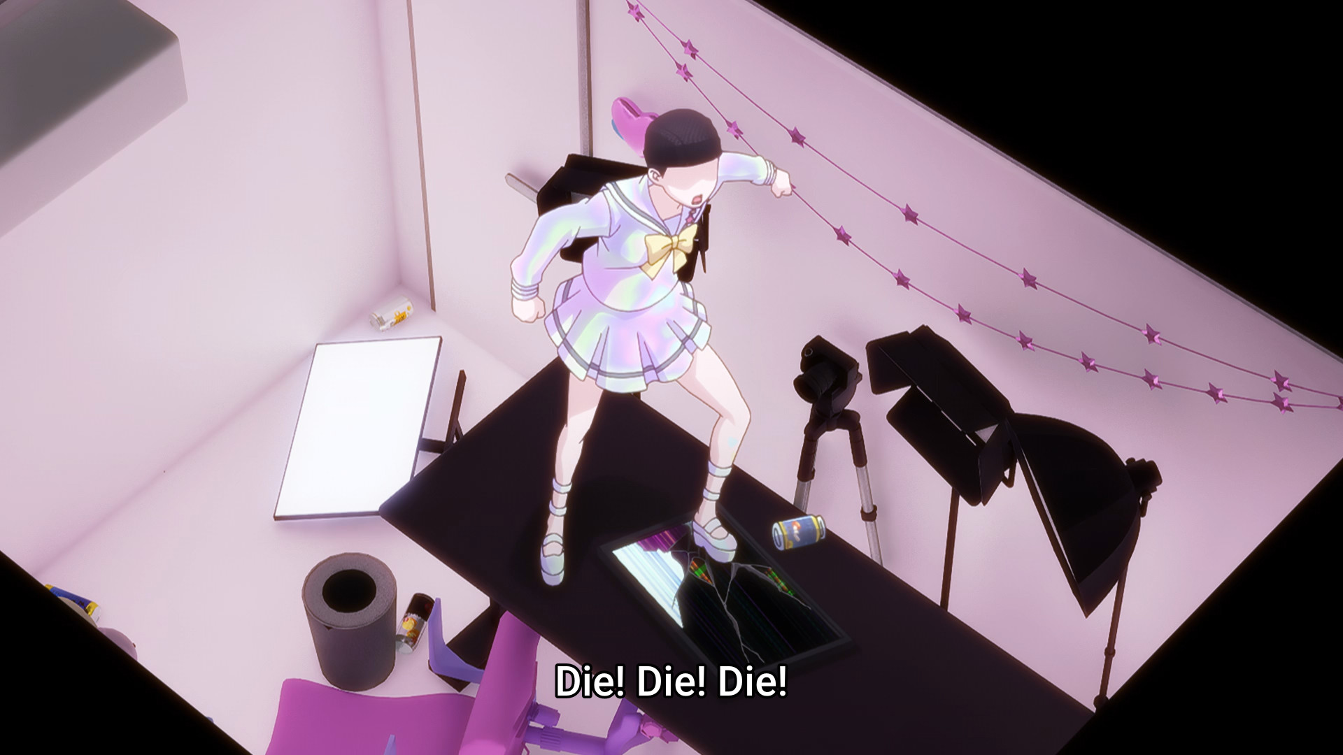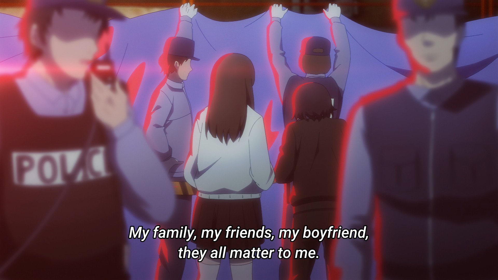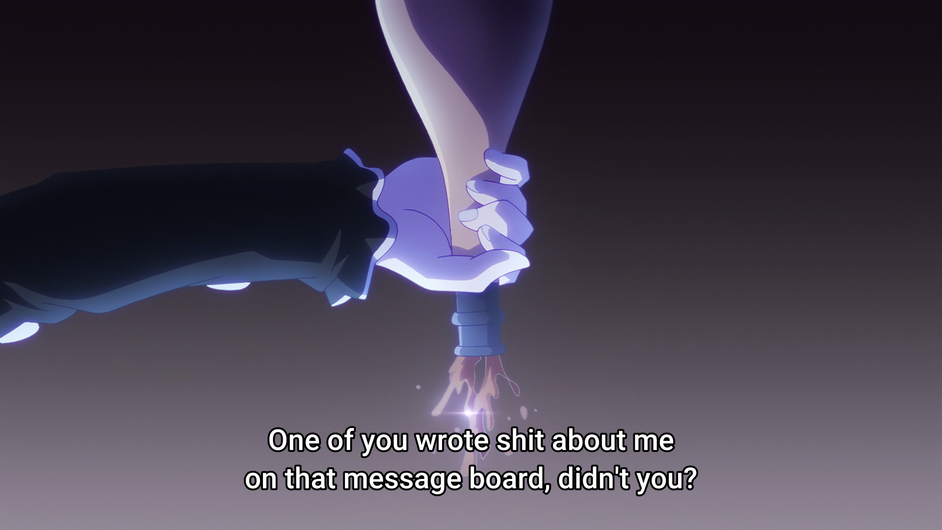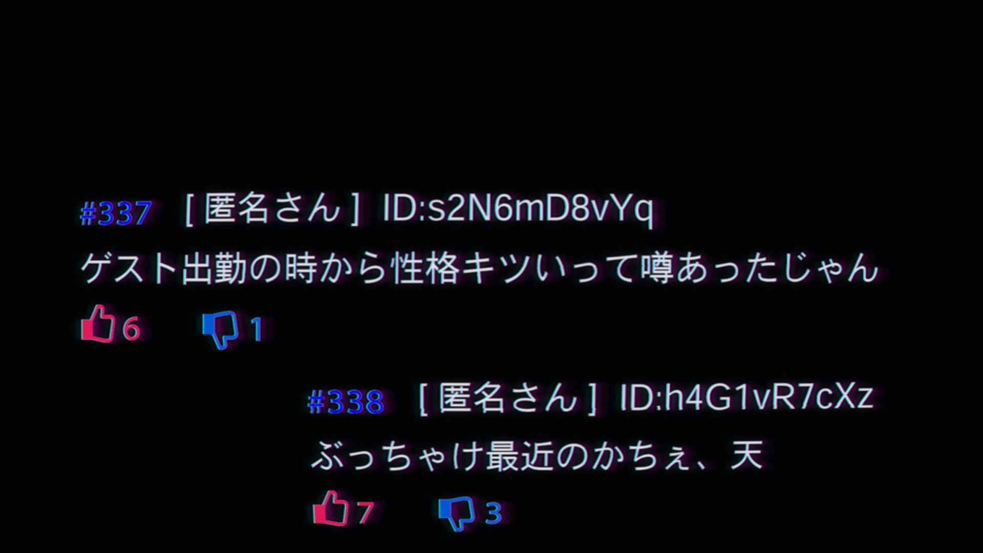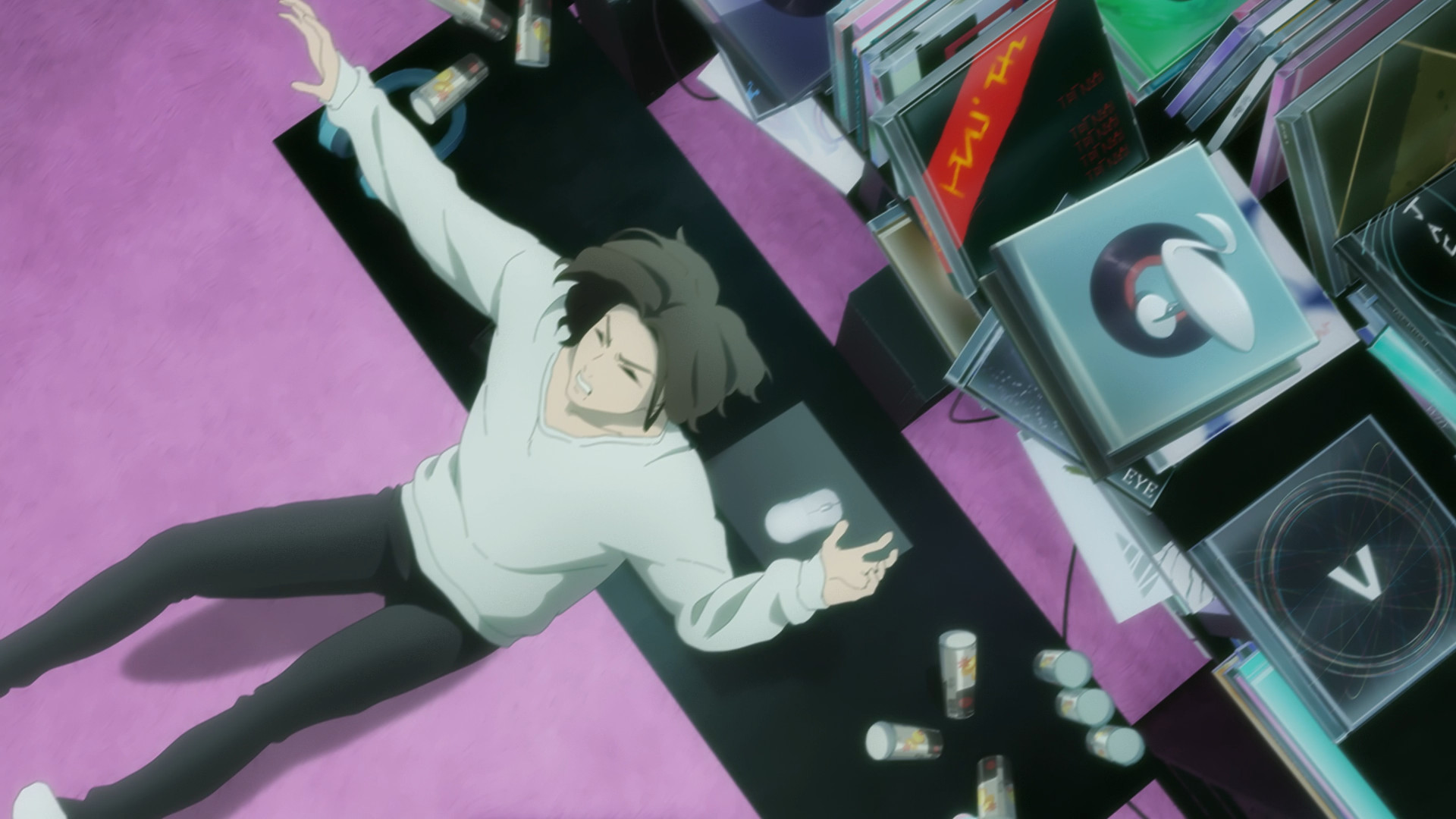 The episode opens with Kache seemingly trying to convince herself that she’s not like the others — that she’s merely ordinary, plain, boring, and thus utterly insignificant before the massive star powers of those like KAngel or Karamazov (though judging by their sub counts, I still don’t think they’re anywhere near the same level). But there’s a moment in this monologue that I find particularly interesting. I dunno what you call them (if they even have an official name), but there are these massive displays made up of smaller, tinier screens. Kache comes across one of them lying on the ground and picks it up. Neither the smaller screen or the bigger one are active. But when she puts the one in her hands back into its rightful place, the whole thing comes to life. Before you know it, KAngel looms over everyone. The internet superstar has her hands clasped together and her eyes closed as if she’s praying. This facade makes me think of the Virgin Mary or religious saints. And again, this display was defunct until Kache completed the “puzzle.” This “monument” to KAngel literally didn’t exist until she had every single “pixel.” It’s like how idols would be nothing without their fans. What even is a goddess without her worshippers? So Kache can lambast her position as a lowly “normie” all she wants, but it’s a reciprocal relationship. Sure, there are way more people like her than there are massive internet superstars, but the fans clearly matter. If they didn’t, content creators wouldn’t need to ego surf. If they didn’t, content creators wouldn’t desperately look for validation. And likewise, if fans were merely insignificant grains of sand, then why would their criticism — even anonymous ones — hurt so much?