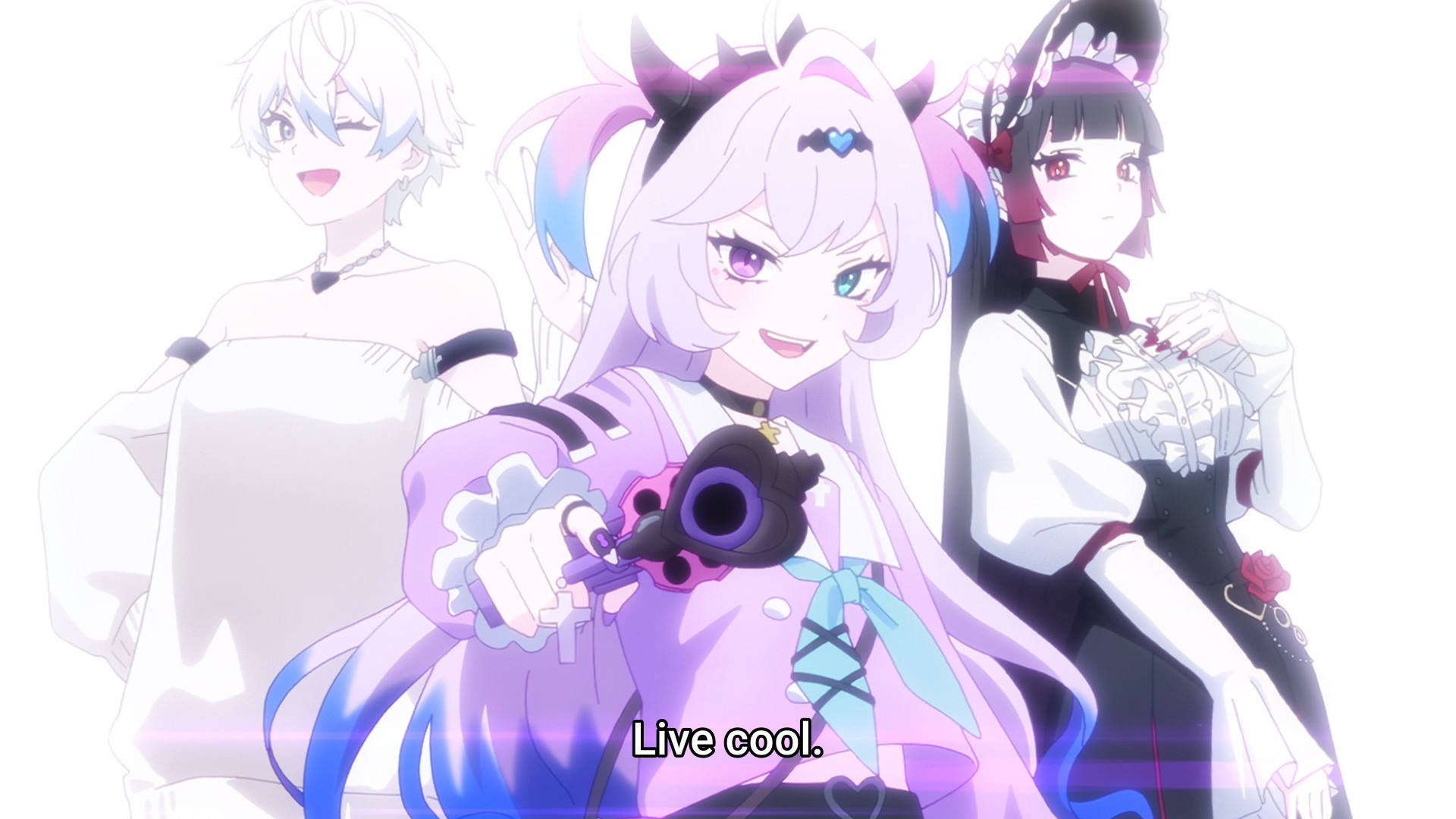 We keep seeing flowers blooming. We see flowers when Kache looks for and finally finds Michica. We see them again when she spies Nechika and Michica having a private, romantic moment. Maybe Michica meant more to Kache than just a friend. So far, everything has been about conformity versus non-conformity. Kache bemoans the fact that her classmates, school and life in general always being the same, but she’s just sitting at her desk, complaining. Even when it comes to her sexuality, she feels as though she has to deny who she is. Kache doesn’t want to garner negative attention (though she ends up seeing them anyway), so she tries to live a “normal” life. Is this why she’s still with that boyfriend who continually assaults her? ‘Cause he’s a hot guy in a band? Is this also why she works a soul-crushing job where she has to please customers she despises? On the other hand, Michica is fine with any attention. She smashes windows, gets dolled up in gothic lolita fashion, then wanders through dangerous, seedy areas of the city. She’s giving herself clout regardless of whether it’s positive or negative. People stop just to take pictures of her on the street, which then goes viral and leads to even more people looking out for her. It’s a feedback loop.