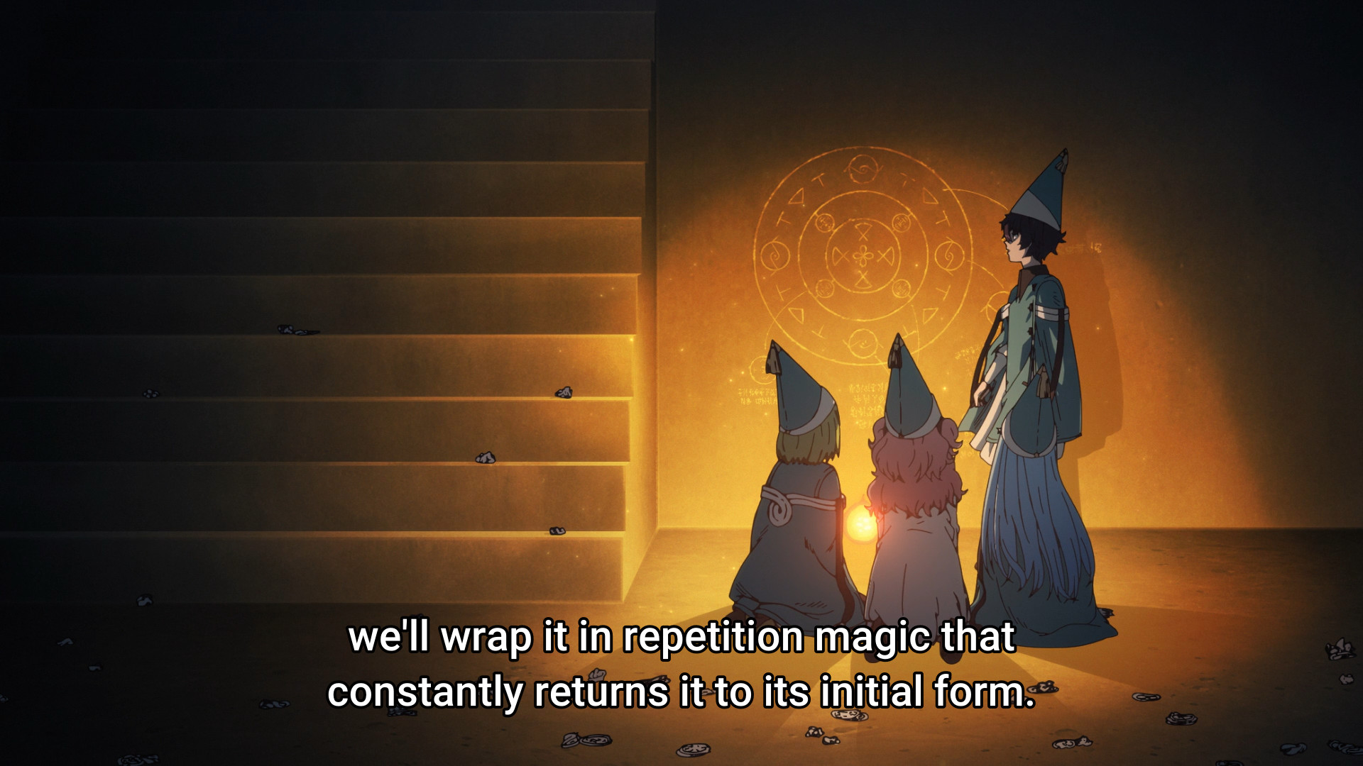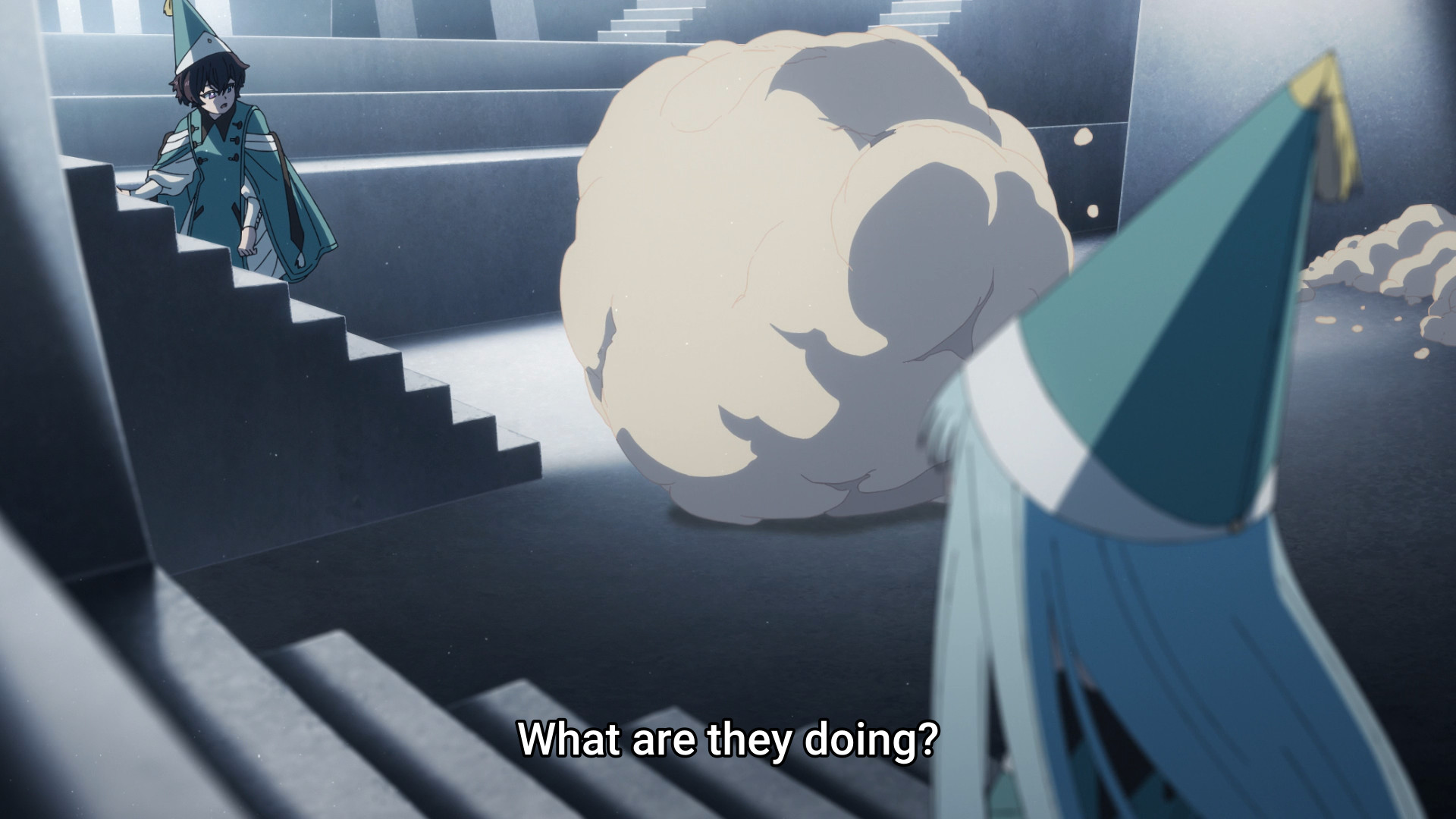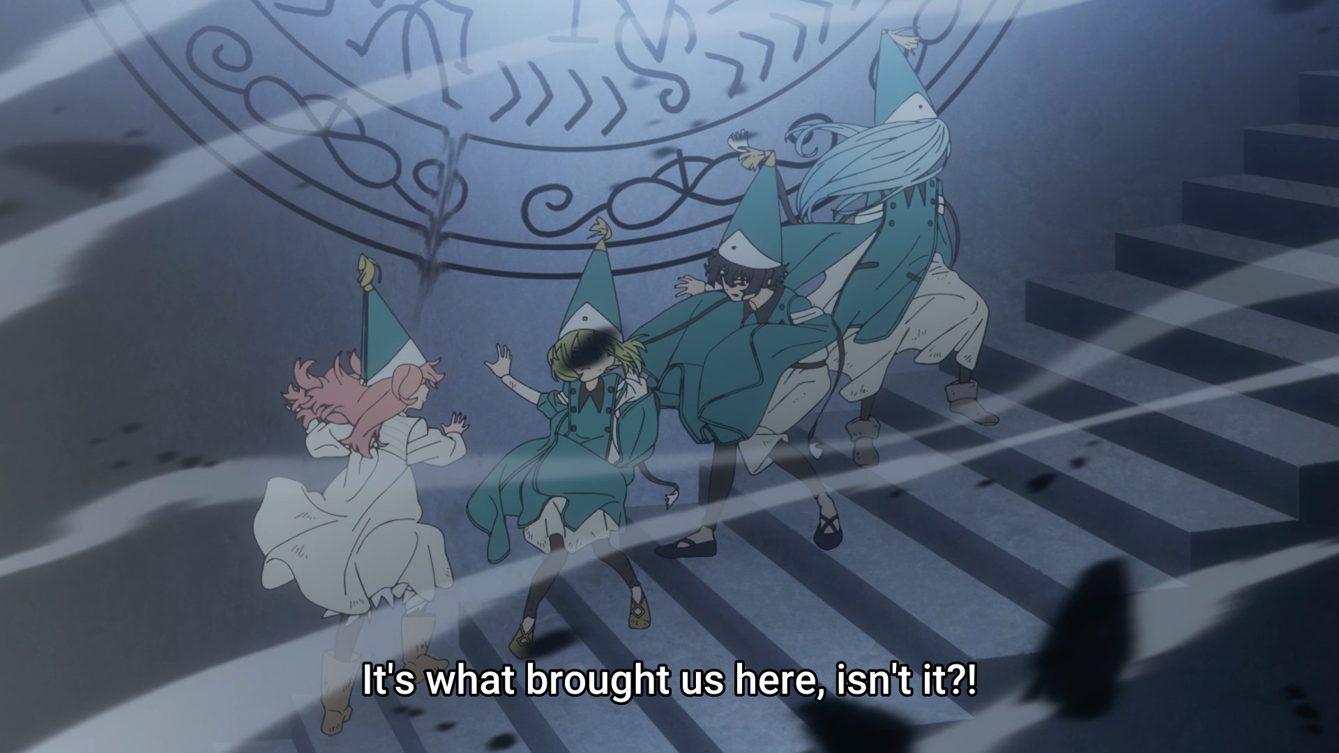 The girls keep running in circles. They come to the realization that they’re trapped in a very small, enclosed space. Maybe even a pocket dimension! Luckily, what Coco spotted in last week’s episode — y’know, before Agott had her (admittedly valid) crash-out — might just be the Casting Seal keeping them trapped here.
