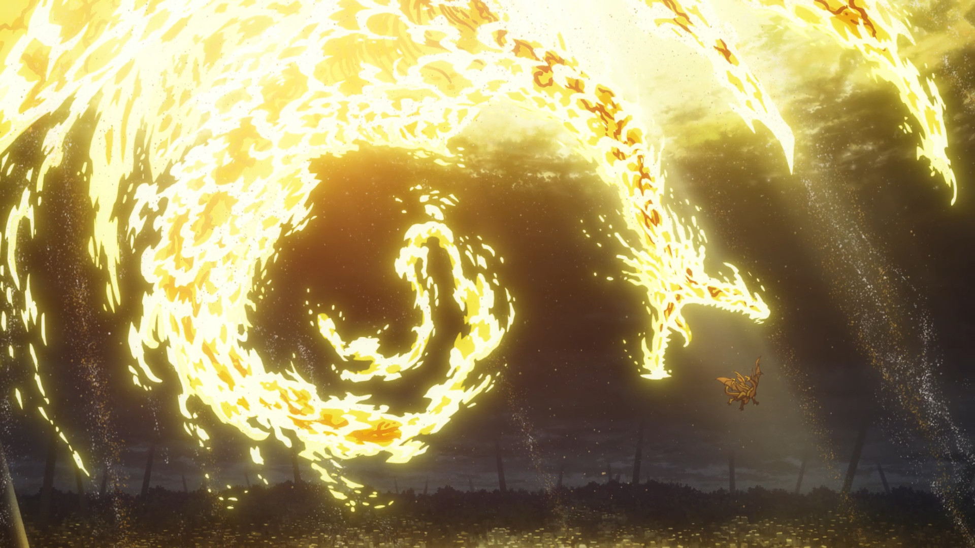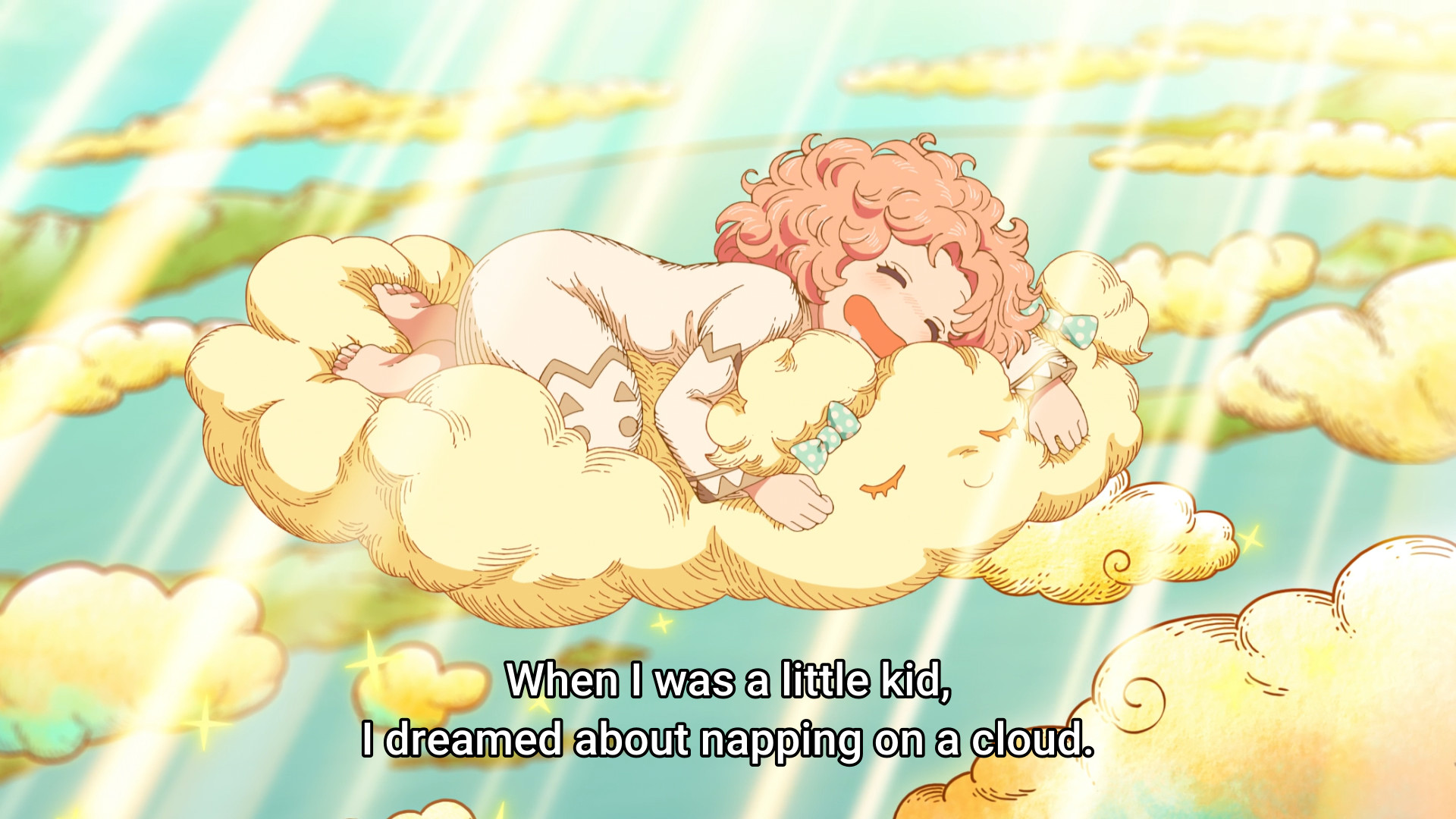 Taking inspiration from Tetia’s spell, Coco suggests using a cloud to get them out of this mess. To reach the Casting Seal? No, to make the dragon fall asleep. She saw the dragon slam itself into a wall, so she started worrying over whether or not the dragon is hurt. To put it simply, she just wants to show her enemy some basic kindness. Haha, okay. No, I’m all for it. It’s silly but kinda adorable. I’m fine with ingenious solutions over violence any day of the week. I’m fine with spreading love and happiness. We certainly need more of them in current day and age. The older I get, the less appeal pure destruction and traditional anime power scaling have for me.