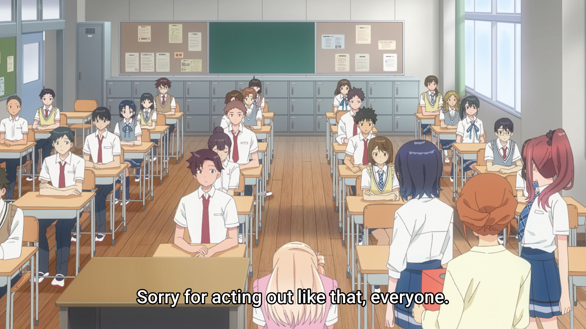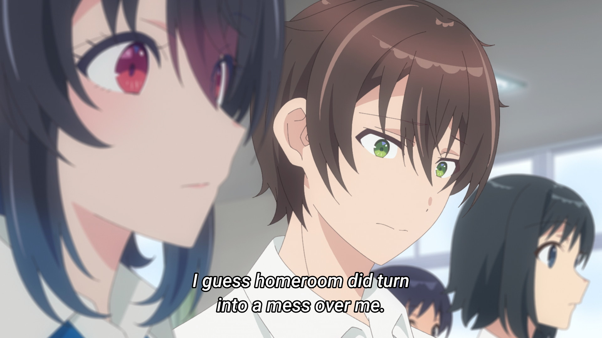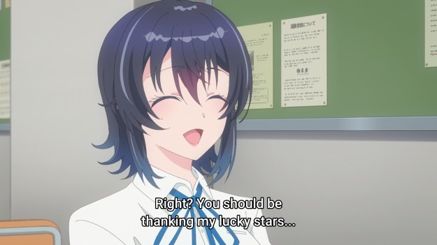 Afterwards, it’s Yuu’s turn to thank Umi! She says she would’ve said nastier things if Umi hadn’t stopped her. Huuuuuuuuuh? By the time Umi spoke up, Yuu was already volunteering to become the class rep. She had already stopped addressing the rest of the class. Also, “nastier things” implies that what she said was nasty in the first place. Fine, let’s fucking go over her words: