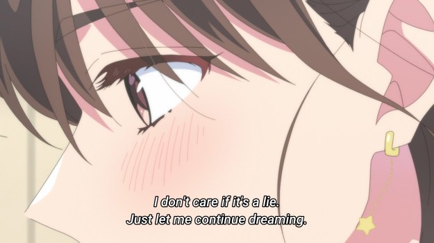 Tamon has a meet-and-greet coming up, and he’s naturally freaking out about it. It sounds like he isn’t confident that he can maintain his cool, sexy persona for the entire duration of the event, so here comes Utage with the assist. She shows him the absolute heap of material she has collected and collated over the entirety of her fandom. By studying all the notes she has taken on the character he plays, he can hopefully keep up the facade through the meet-and-greet. In other words, Utage’s helping Tamon reinforce the fabricated side of himself, which she has paid top bucks to enjoy. Isn’t that a bit odd?