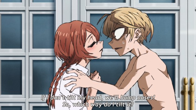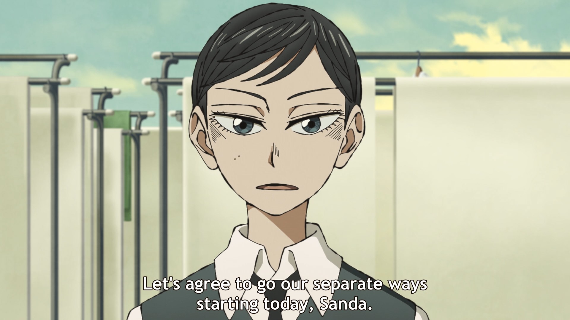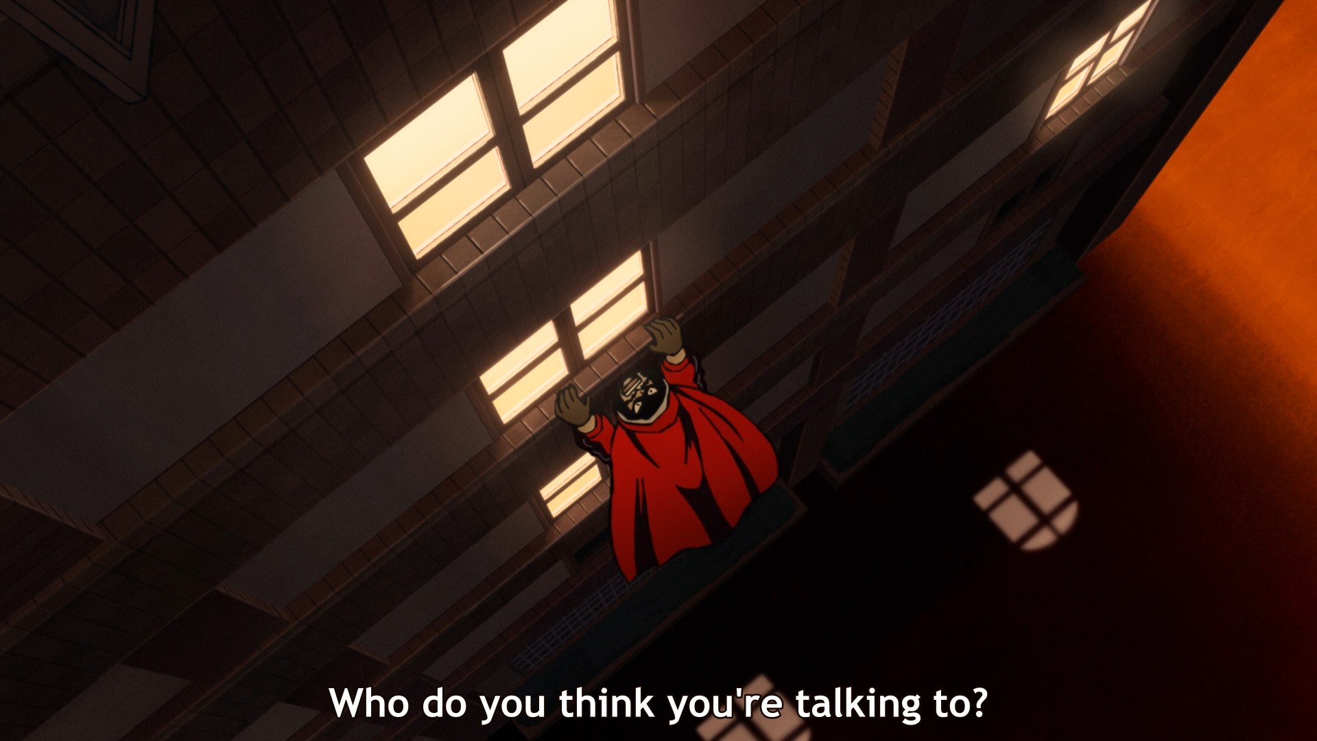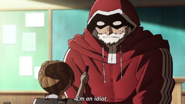 Once again, Fuyumura comes to Sanda/Santa’s rescue, but this only breaks the initial deadlock between him and Namatame. For round two, Sanda/Santa decides to confront Namatame as his kid self. Why the change in tactic? Well, his logic is simple: if Santa can’t fight back against a child, then surely a kid can. We get this discussion between the main characters about how kids can be violent to each other, but when adults do it, it’s called abuse. I dunno, man. I don’t think you can say that when every other anime features schoolyard bullying in some form or fashion. Sounds to me like kids can be pretty abusive too.